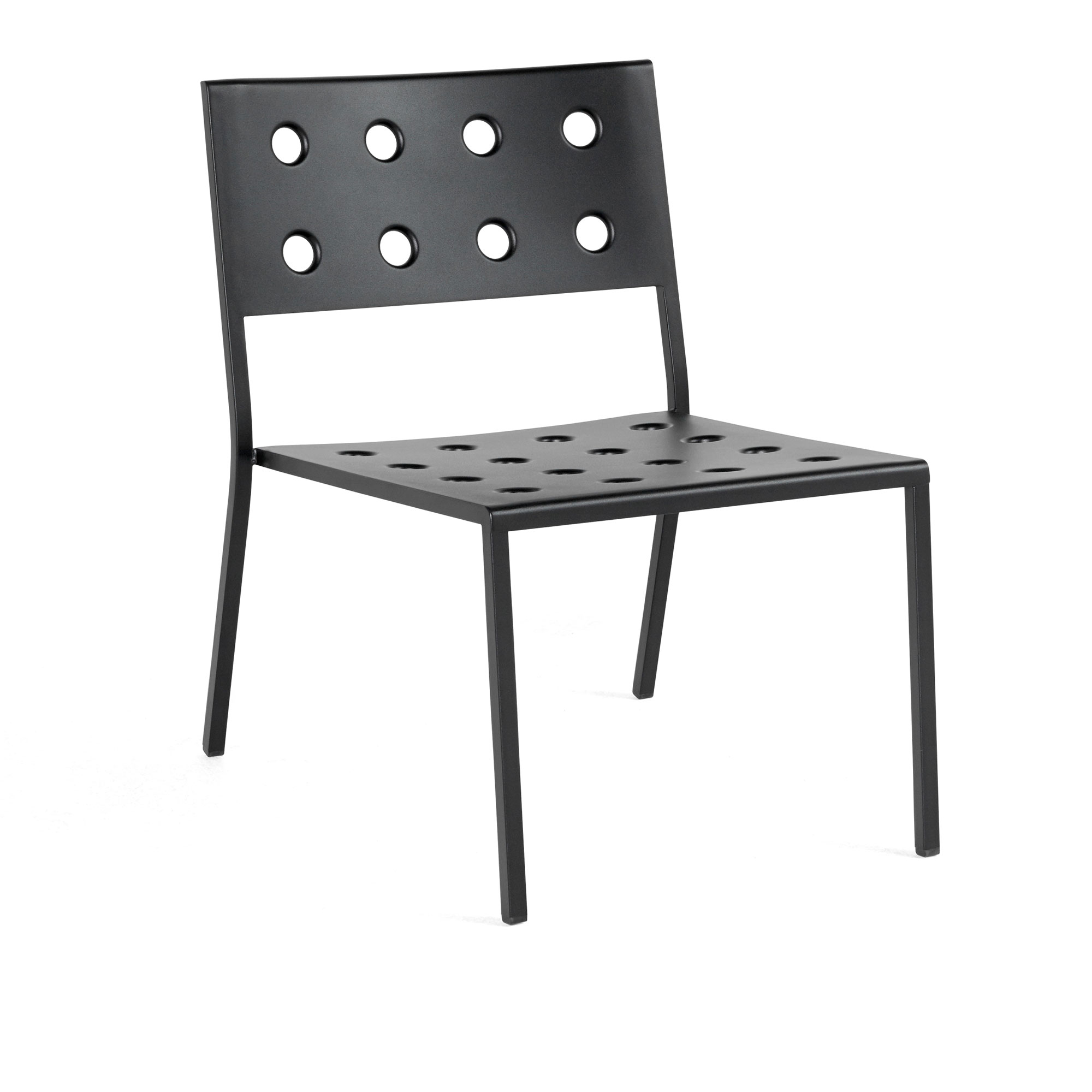 Balcony Lounge Chair ingår i serien Balcony som består av eleganta utemöbler formgivna av Ronan och Erwan Bouroullec för danska HAY. Fåtöljen och övriga delar i serien passar i en rad olika miljöer, som på caféer och restauranger, i trädgårdar samt på terrasser och balkonger. På landet såväl som i storstaden. Möblerna är tillverkade av pulverlackerat stål med utomhusprimer för att tåla utebruk och hålla länge. Balcony har en tydlig grafisk form som ger ett lätt och luftigt intryck. Kollektionen innehåller ett stort antal delar såsom stolar, bord, bänkar och loungestolar.