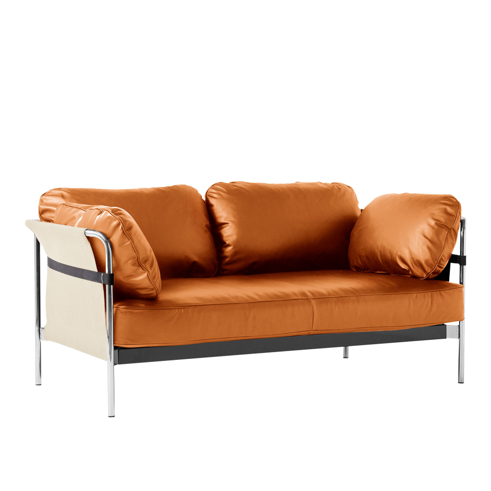 HAY - Can 2 Seater - Chrome Base - Natural Canvas - Cat.6 - Sense Cognac - Soffor - Ronan & Erwan Bouroullec