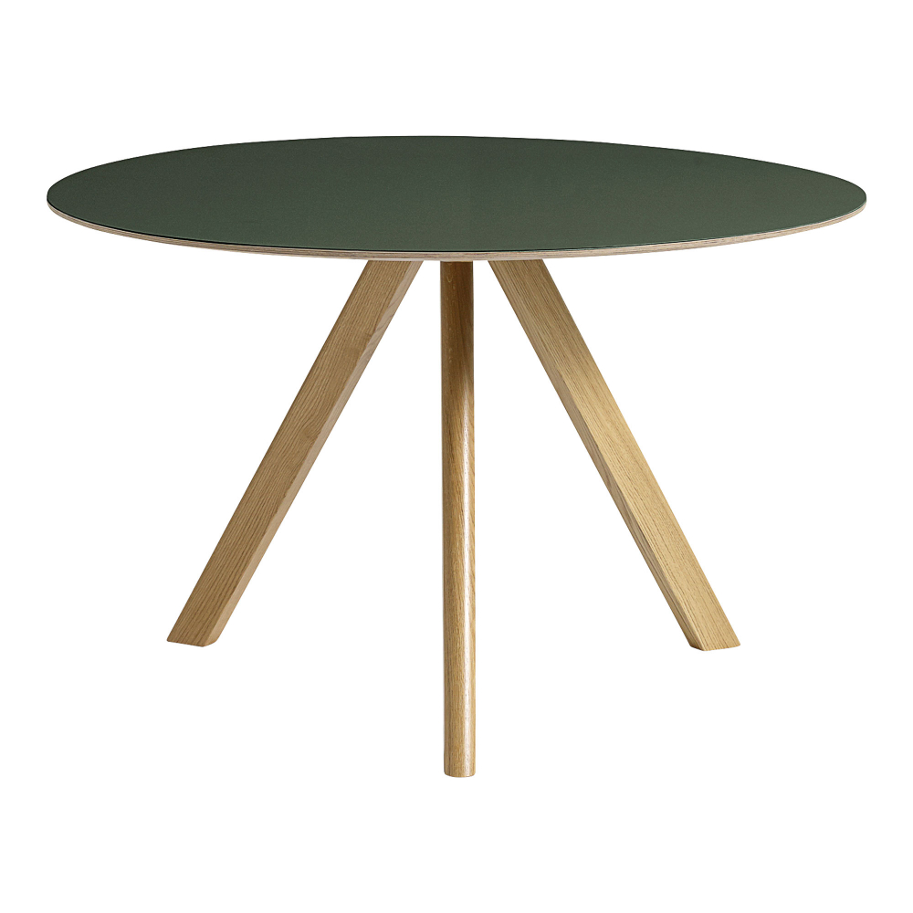 HAY - CPH20 2.0 Table Lacquered Oak Frame Ø120 X H74 Green Linoleum Tabletop Lacquered Edge - Matbord - Ronan & Erwan Bouroullec - Grön - Trä