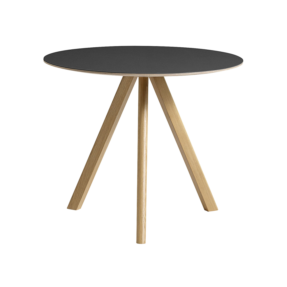 HAY - CPH20 2.0 Table Lacquered Oak Frame Ø90 X H74 Black Linoleum Tabletop Lacquered Edge - Matbord - Ronan & Erwan Bouroullec - Svart - Trä
