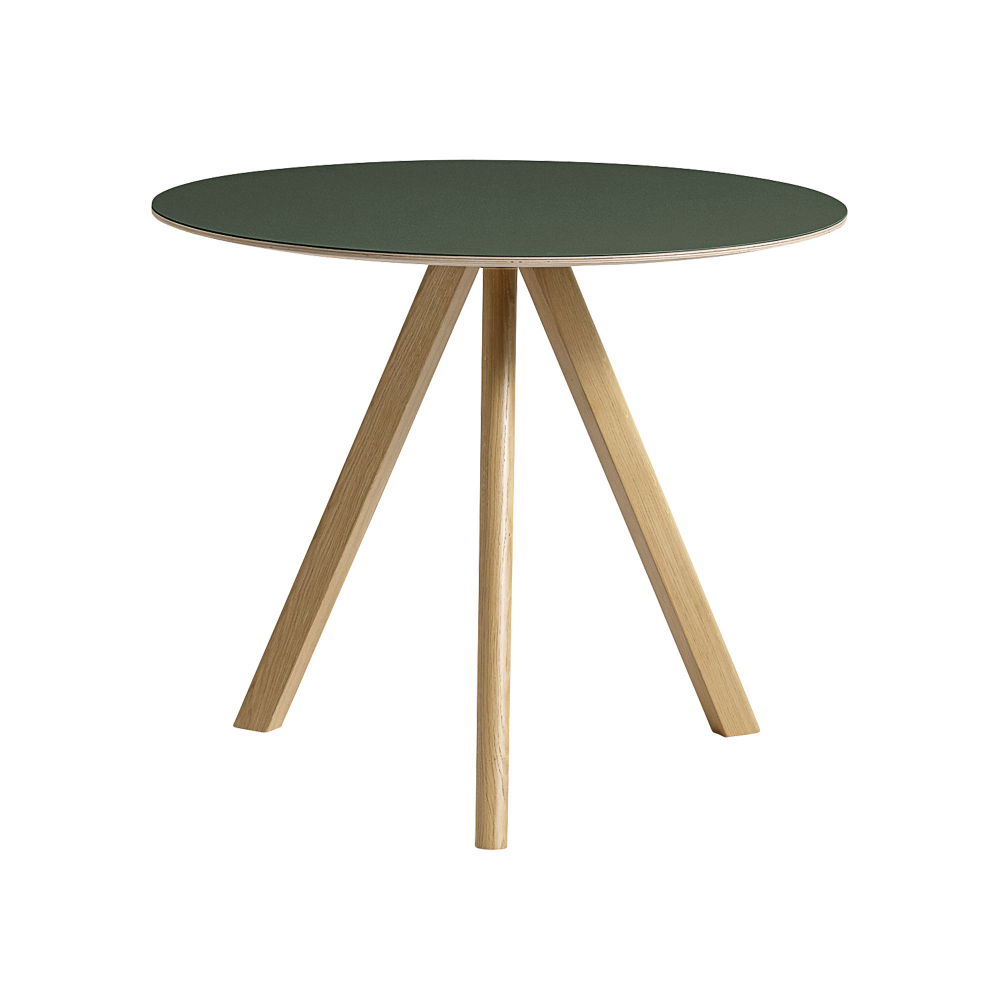 HAY - CPH20 2.0 Table Lacquered Oak Frame Ø90 X H74 Green Linoleum Tabletop Lacquered Edge - Matbord - Ronan & Erwan Bouroullec - Grön - Trä