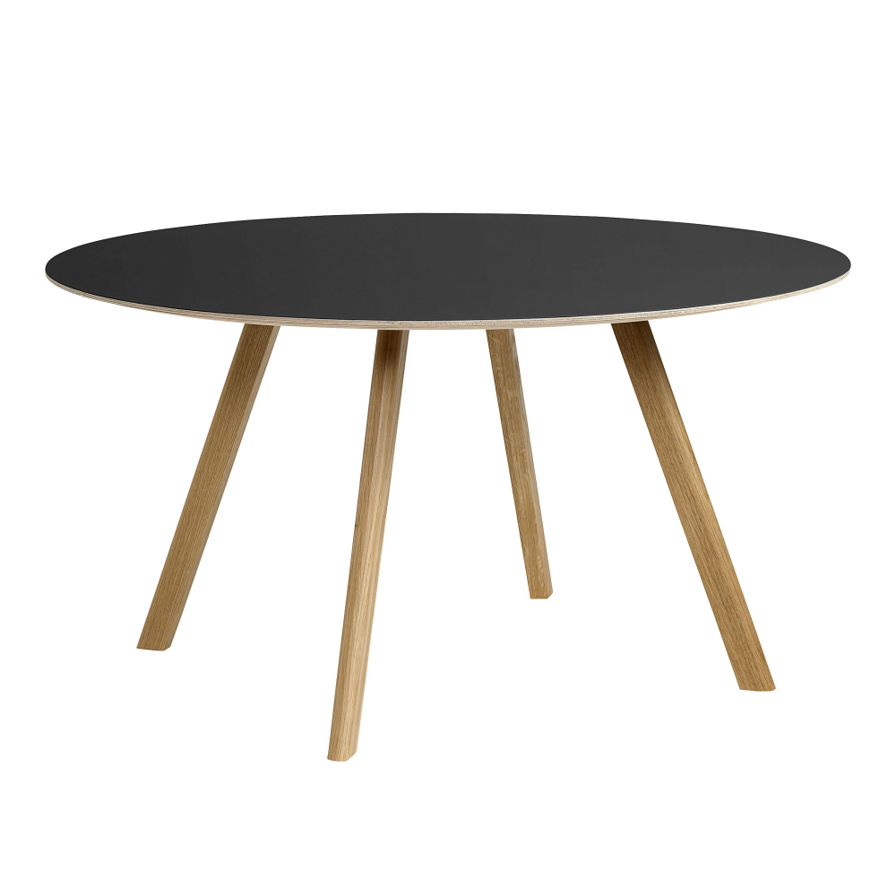 HAY - CPH25 2.0 Table Lacquered Oak Frame Ø140 X H74 Black Laminate Tabletop Lacquered Edge - Matbord - Ronan & Erwan Bouroullec - Svart - Trä