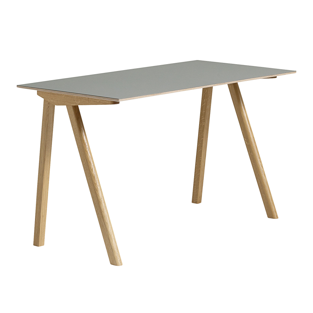 HAY - CPH90 2.0 Desk Lacquered Oak Frame L130 X W65 X H74 Grey Linoleum Tabletop Lacquered Edge - Skrivbord - Ronan & Erwan Bouroullec - Grå - Trä
