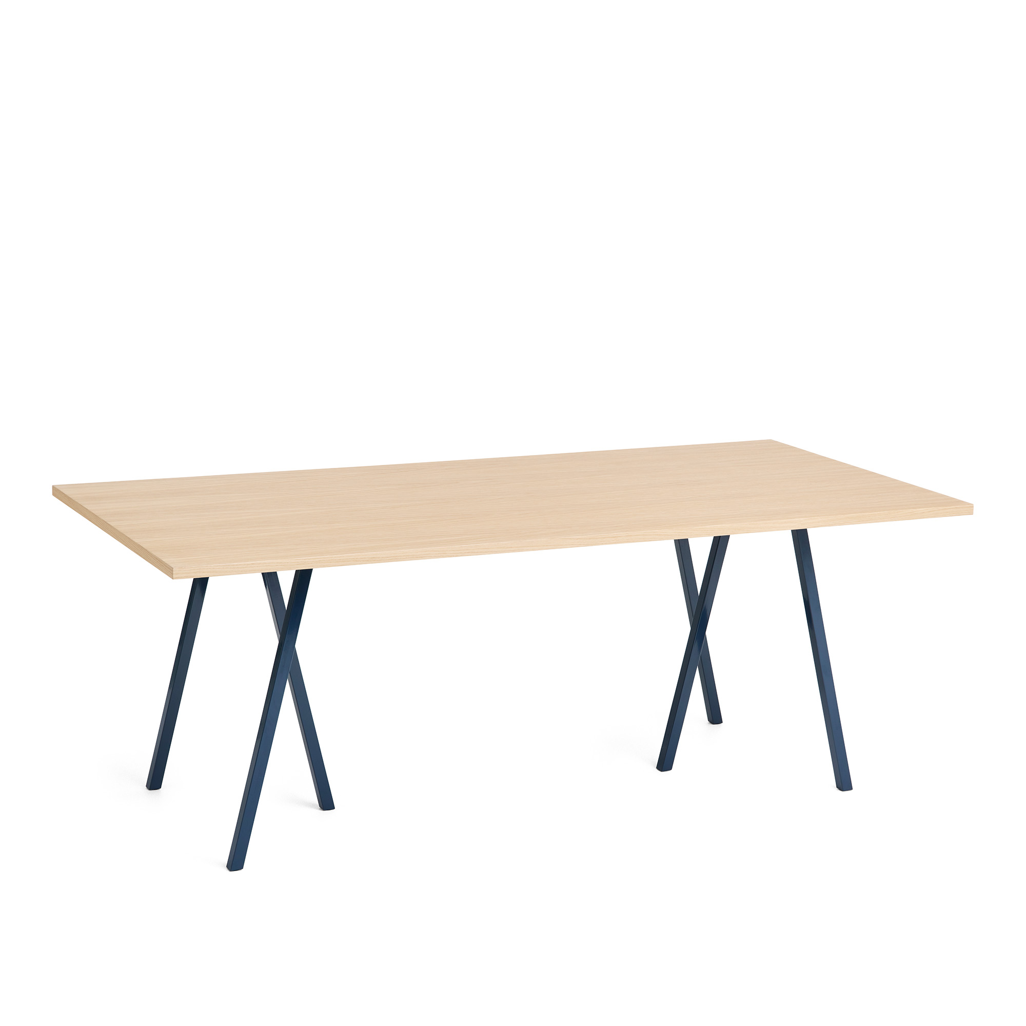 HAY - Loop Stand Table Deep blue powder coated steel frame L200 x W92,5 x H74 Clear lacquered oak tabletop Water-based lacquered oak edge - Matbord - Leif Jørgensen - Blå - Metall/Trä