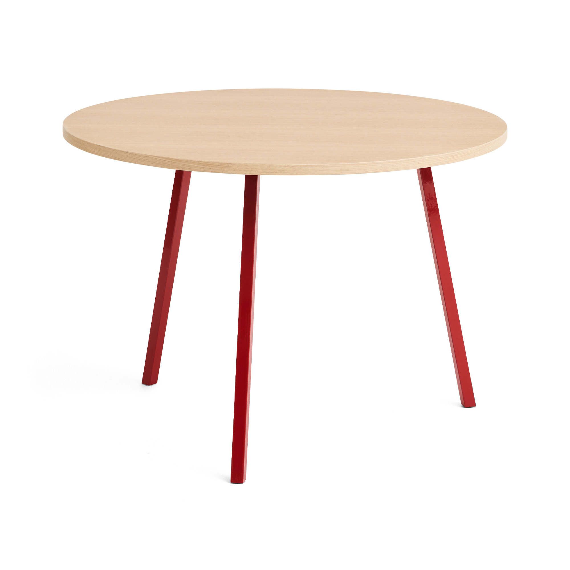 HAY - Loop Stand Table Round Maroon red powder coated steel frame Ø105 x H74 Clear lacquered oak tabletop Water-based lacquered oak edge - Matbord - Leif Jørgensen - Röd - Metall/Trä