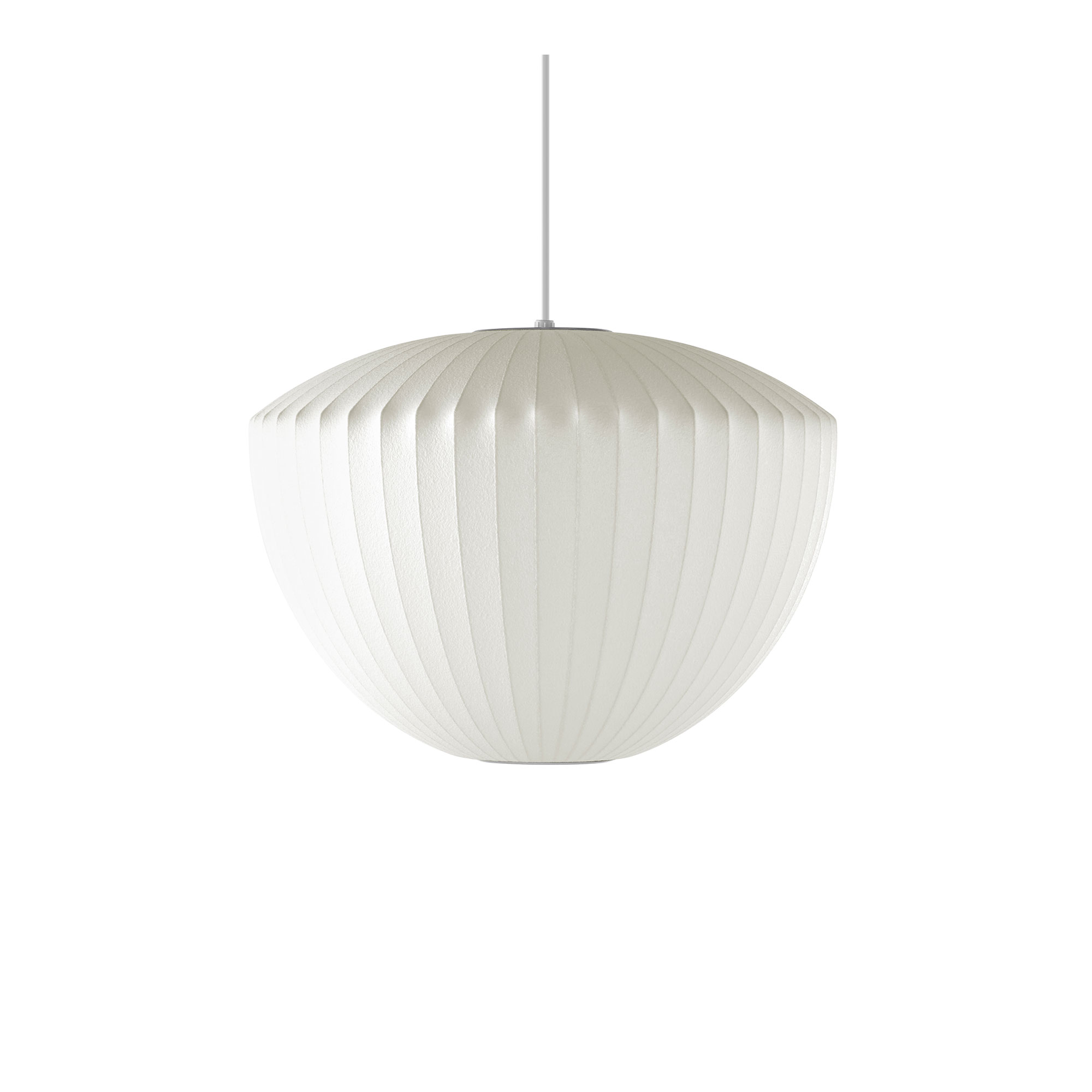 Nelson Apple Bubble Pendant är en pendel från danska Hay, formgiven av George Nelson. Den legendariska amerikanska formgivaren George Nelson presenterade den ikoniska lampserien Nelson 1947 då han fann inspiration från en svensk silkesklädd taklampa. Lampan kom först i produktion 1952 och serien expanderades genom åren med flera olika modeller i olika mönster och former. Lampan har en stomme i borstad nickel och en skir lampskärm i webbad polymer.