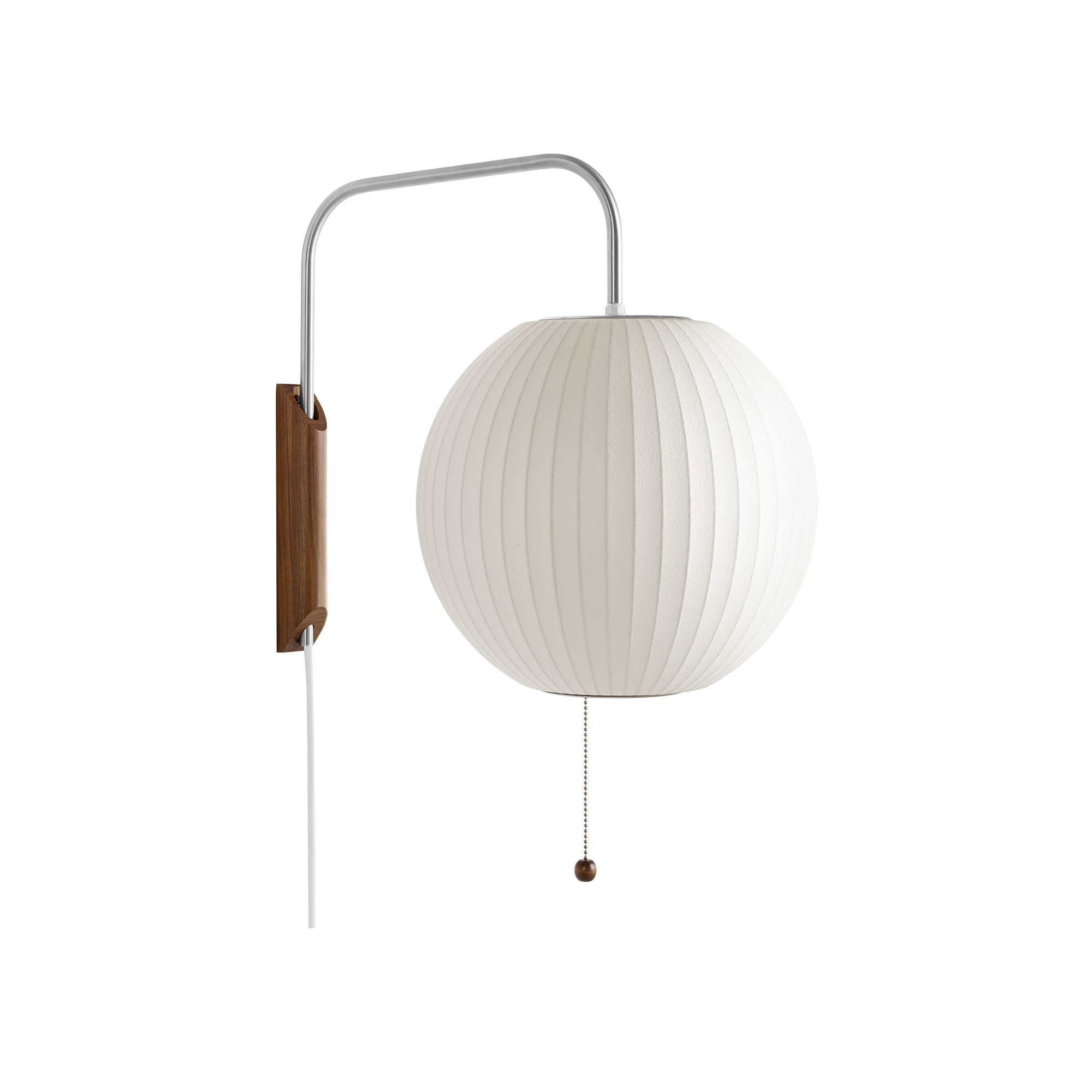 Nelson Ball Wall Sconce är en vägglampa från danska Hay, formgiven av George Nelson. Den legendariska amerikanska formgivaren George Nelson presenterade den ikoniska lampserien Nelson 1947 då han fann inspiration från en svensk silkesklädd taklampa. Vägglampan kom först i produktion 1952 och serien expanderades genom åren med flera olika modeller i olika mönster och former. Lampan har en stomme i borstad nickel och en skir lampskärm i webbad polymer. Finns i flera olika utföranden.