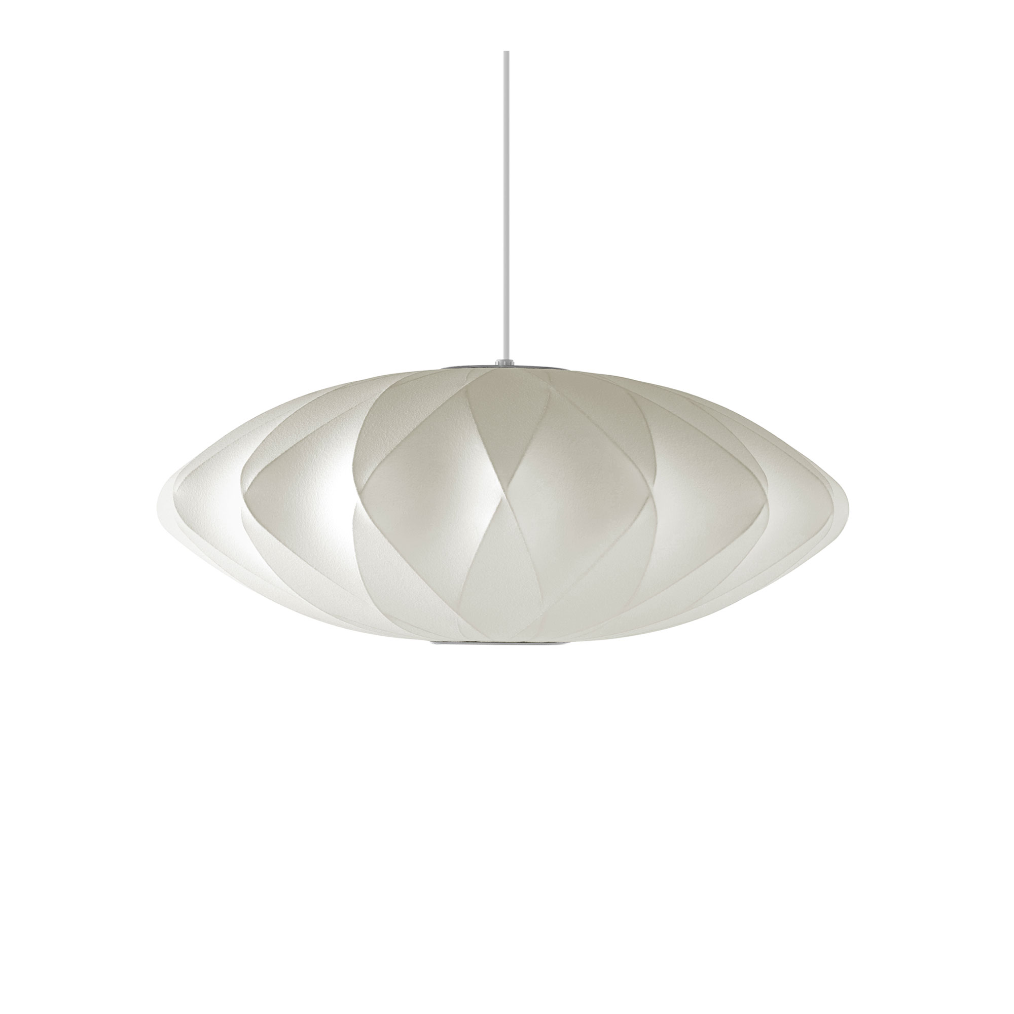 Nelson Saucer Crisscross Bubble Pendant är en pendel från danska Hay, formgiven av George Nelson. Den legendariska amerikanska formgivaren George Nelson presenterade den ikoniska lampserien Nelson 1947 då han fann inspiration från en svensk silkesklädd taklampa. Lampan kom först i produktion 1952 och serien expanderades genom åren med flera olika modeller i olika mönster och former. Lampan har en stomme i borstad nickel och en skir lampskärm i webbad polymer. Finns i flera olika utföranden.