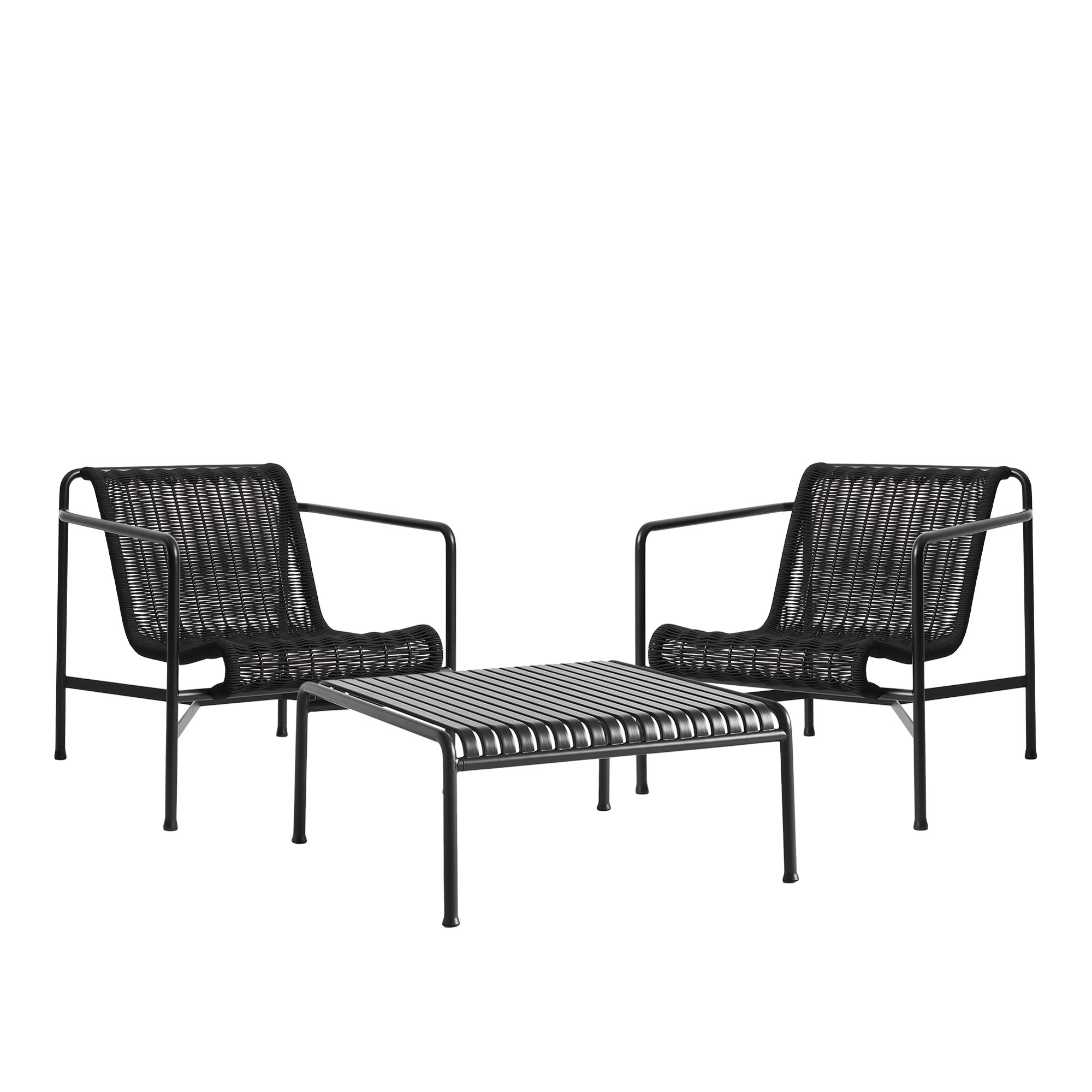 HAY - Palissade cord loungegrupp med 2 stolar & lågt trädgårdsbord anthracite - Loungegrupper utomhus