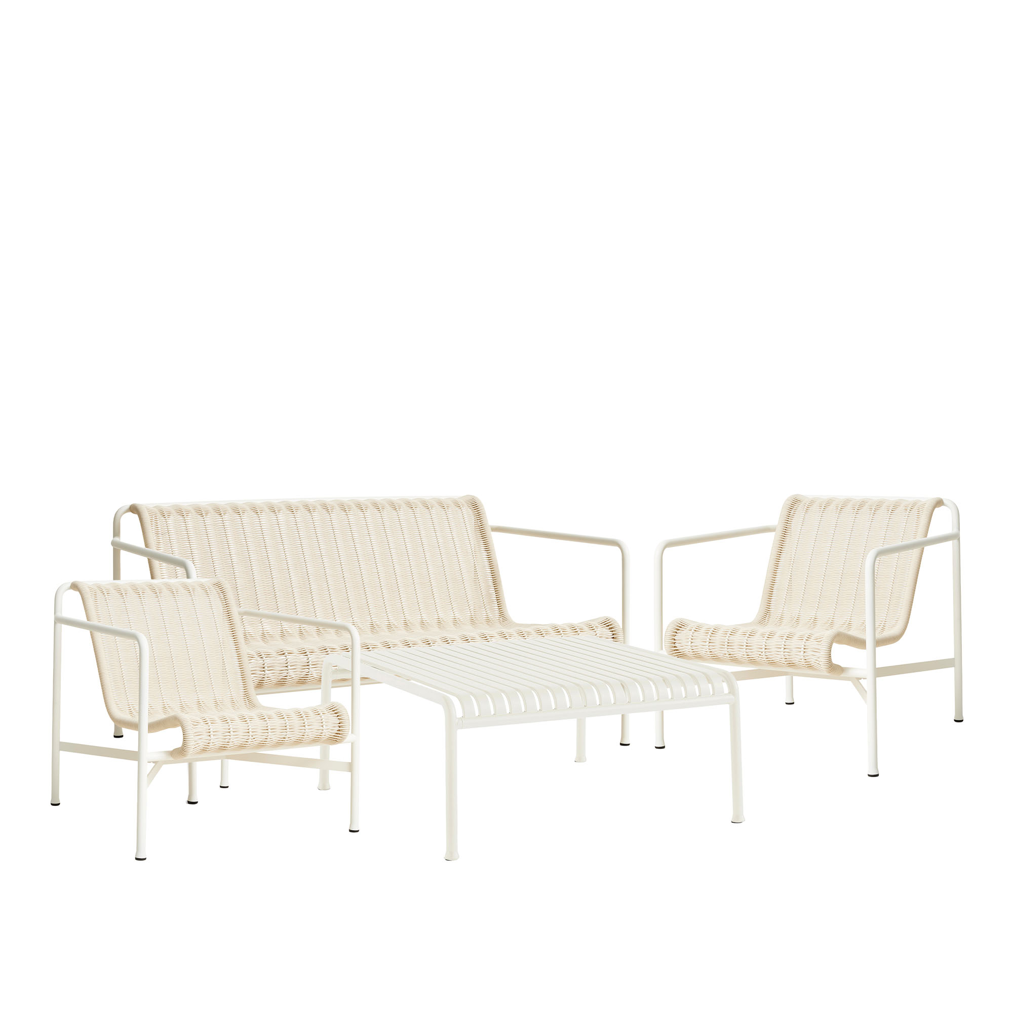 HAY - Palissade cord loungegrupp med loungesoffa, 2 loungestolar & lågt trädgårdsbord cream white - Loungegrupper utomhus