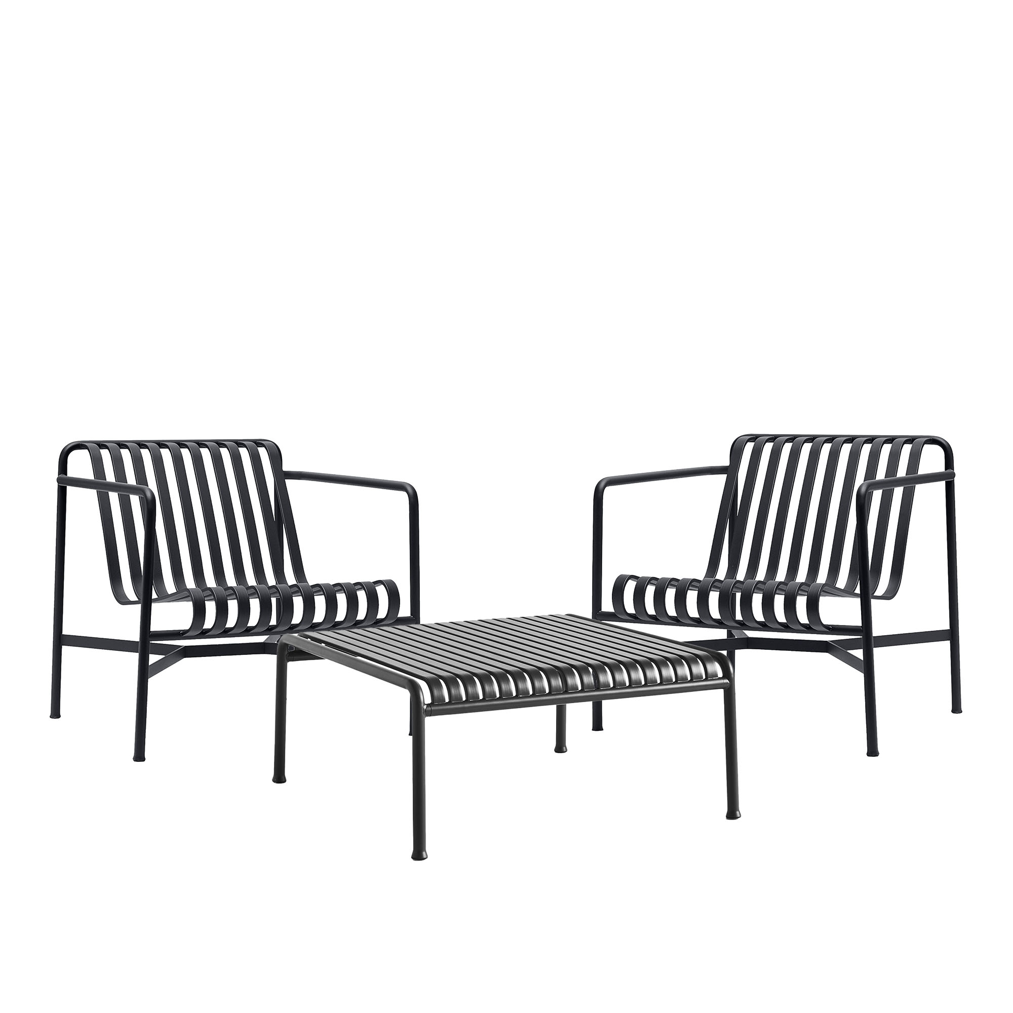 HAY - Palissade loungegrupp med 2 loungestolar & lågt trädgårdsbord anthracite - Loungegrupper utomhus