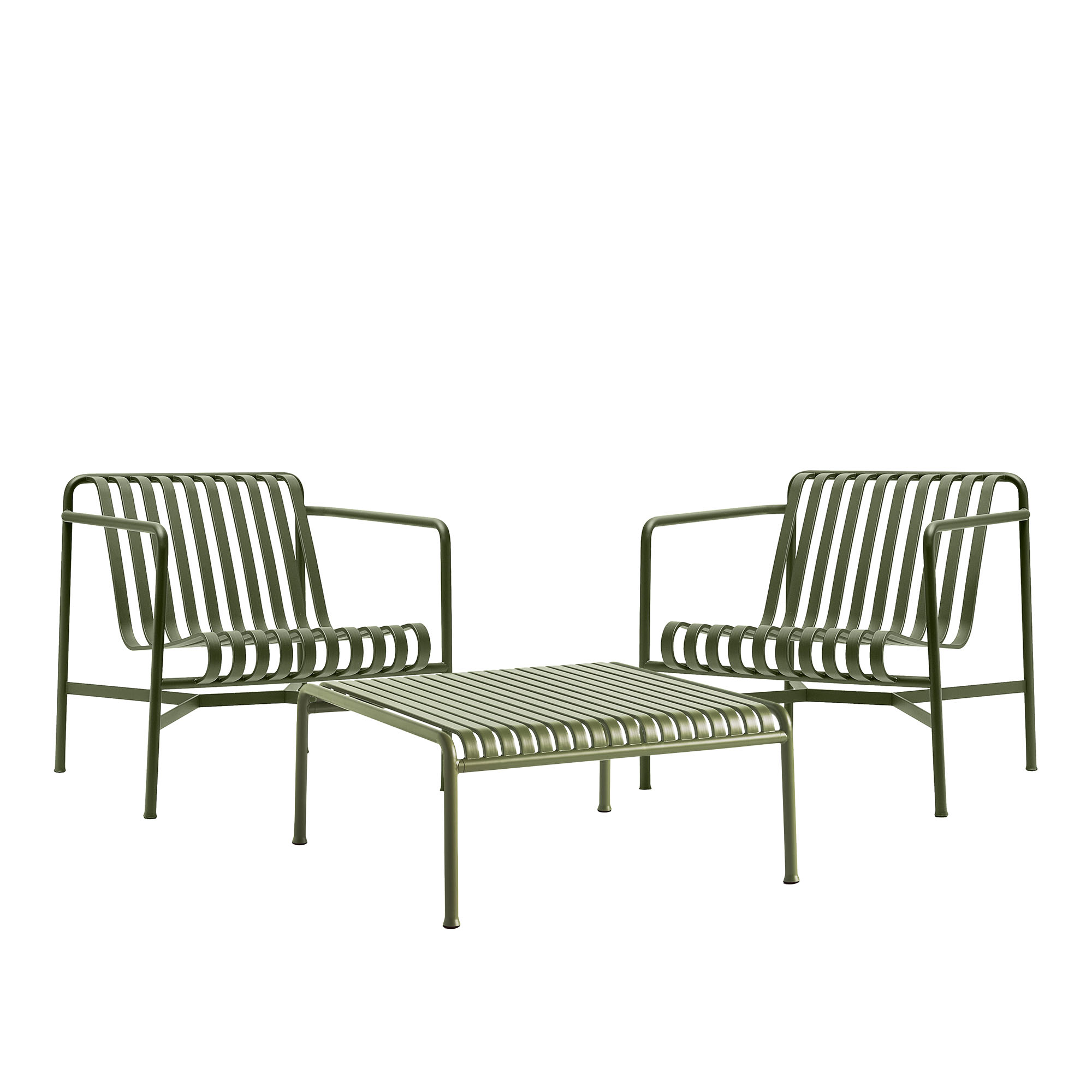 HAY - Palissade loungegrupp med 2 loungestolar & lågt trädgårdsbord olive - Loungegrupper utomhus
