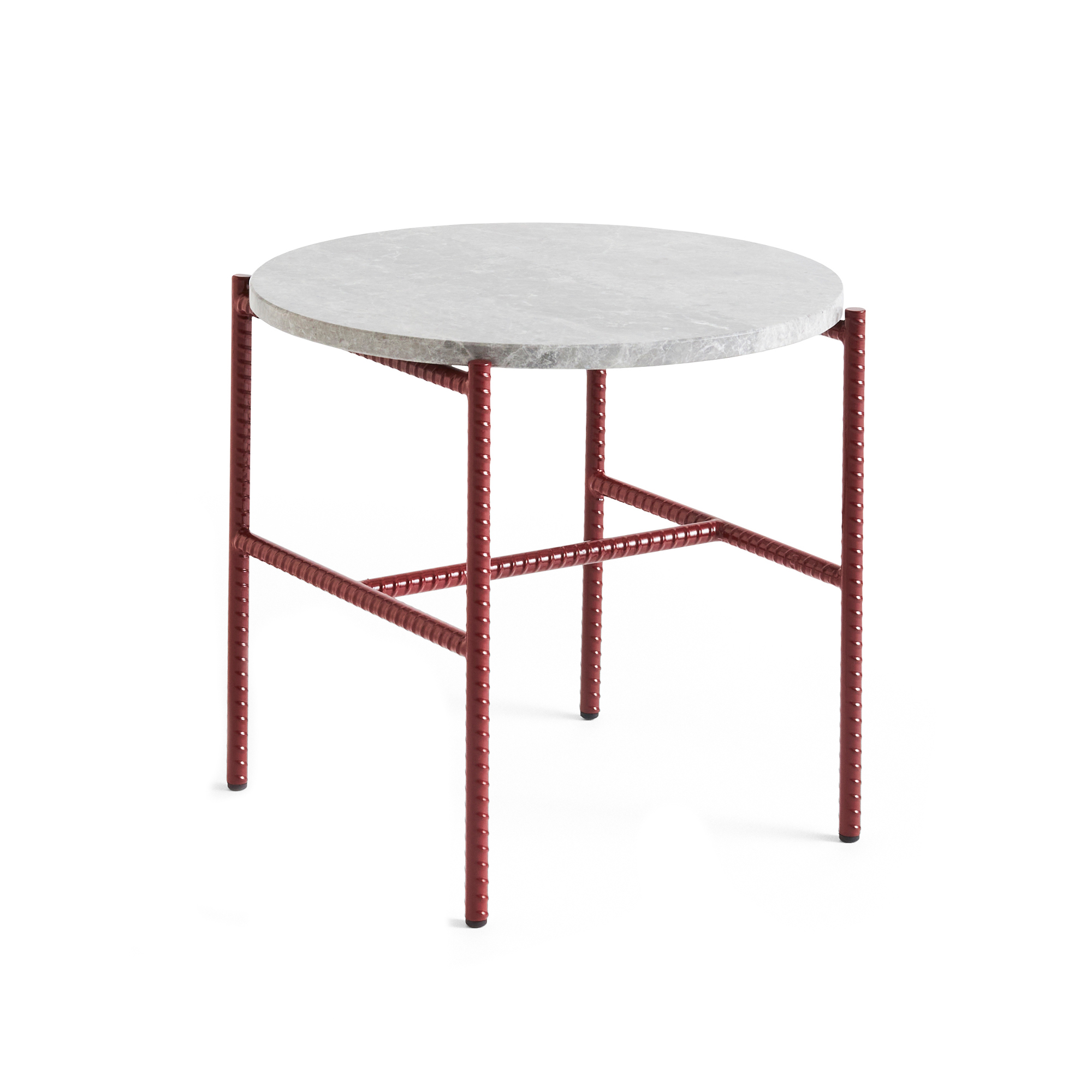 Rebar är en serie bord från Hay, formgiven av Sylvain Willenz. Rebar är en möbelserie som handlar om kontraster – mellan mjukt och hårt, elegant och industriellt, raffinerat och obehandlat. Den eleganta rundade bordskivan i marmor står i juxaposition med den enkla stommen i pulverlackerad ameringsjärn och tillsammans skapar de ett modernt och smakfullt bord. Finns i flera olika utföranden.