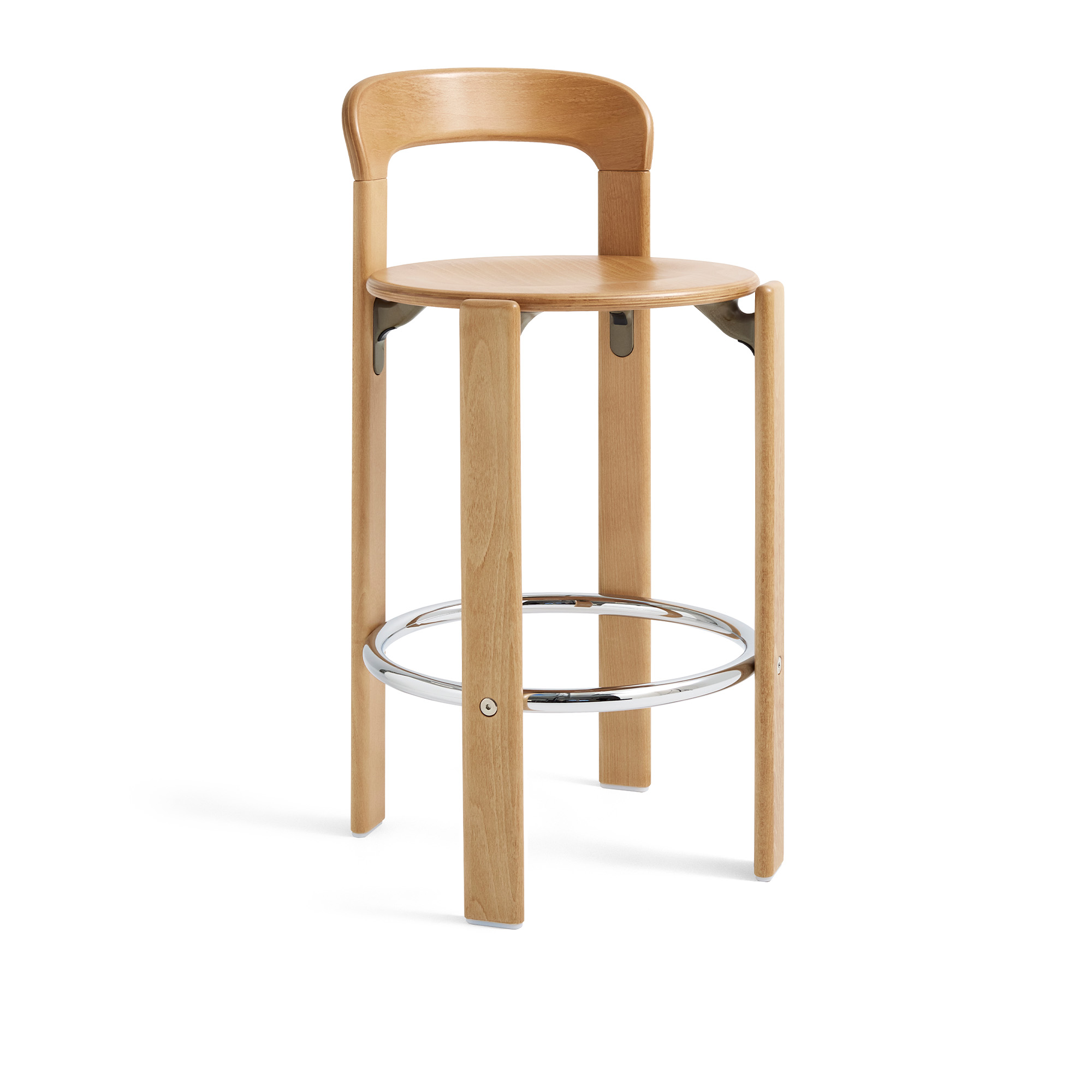 Rey Bar Stool Low är en återlansering av den ursprungliga designen av den schweiziska designern Bruno Rey från 1971 och ett samarbete mellan HAY och Dietiker. Denna ikoniska barstol har Dietikers unika skruvfria trä-till-metall-design, vilket skapar en ren siluett med höga, vinklade ben och avrundade kanter. Den enkla och solida formgivningen ger ett tidlöst uttryck som gör den perfekt för olika miljöer, både privata och hem och offentliga miljöer. Barstolen är tillverkad i massivt trä med en kromfotstöd.