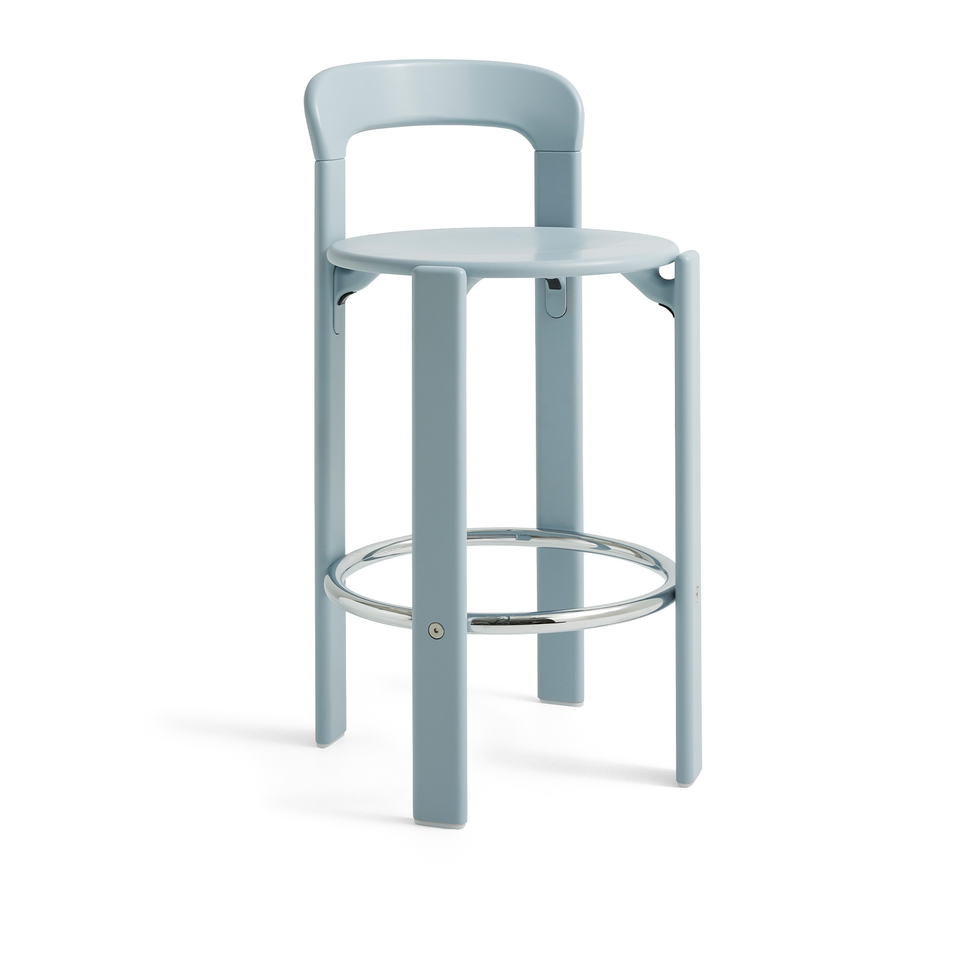 Rey Bar Stool Low är en återlansering av den ursprungliga designen av den schweiziska designern Bruno Rey från 1971 och ett samarbete mellan HAY och Dietiker. Denna ikoniska barstol har Dietikers unika skruvfria trä-till-metall-design, vilket skapar en ren siluett med höga, vinklade ben och avrundade kanter. Den enkla och solida formgivningen ger ett tidlöst uttryck som gör den perfekt för olika miljöer, både privata och hem och offentliga miljöer. Barstolen är tillverkad i massivt trä med en kromfotstöd.