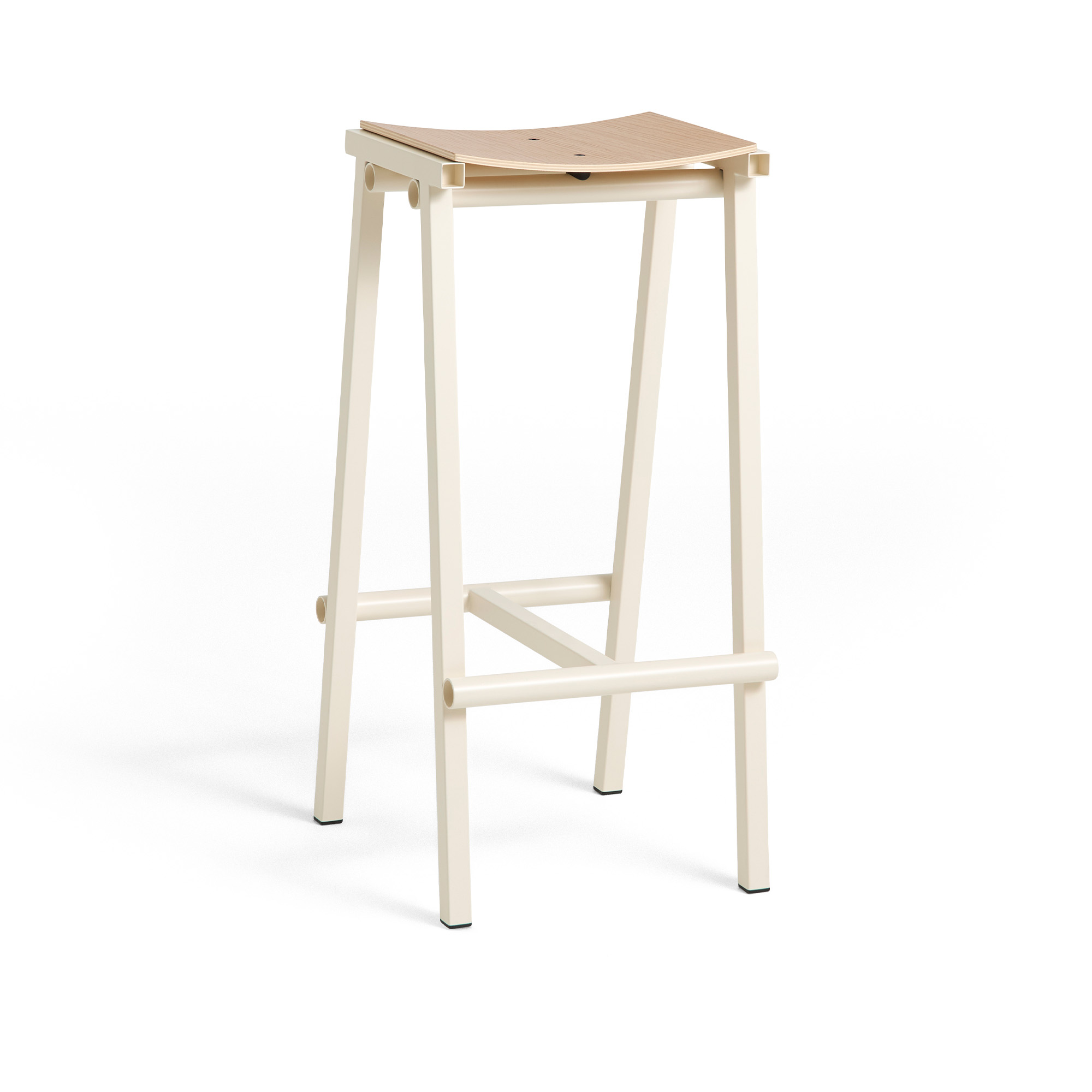 HAY - Taburete 8 Bar Stool High Eggshell Powder Coated Base H75 Water-Based Lacquered Oak Veneer Seat - Barstolar - Marc Morro - Vit - Metall/Trä