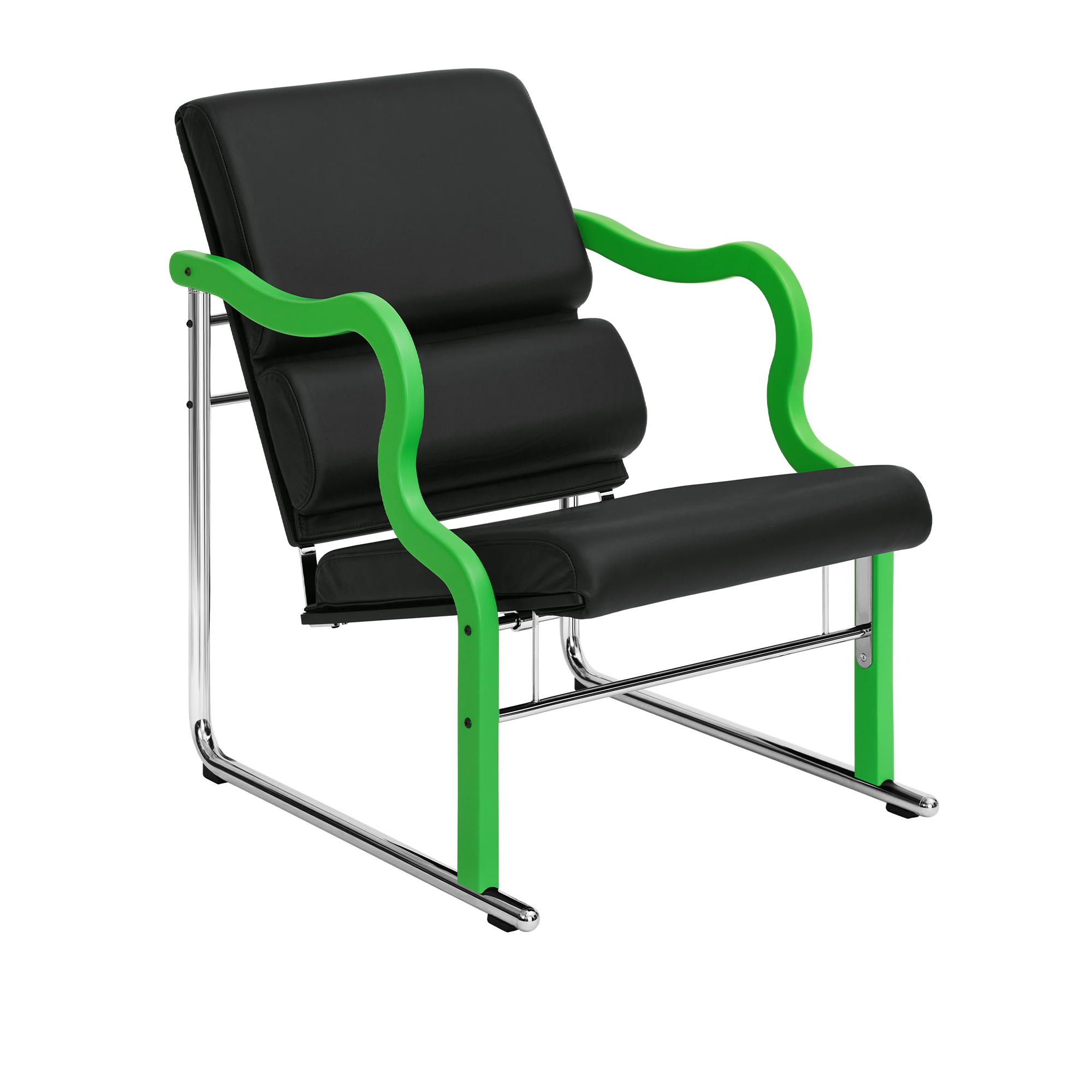 HEM - Experiment Lounge Chair 501, Green/Black Leather - Fåtöljer - Flerfärgad - Metall/Trä/Skum