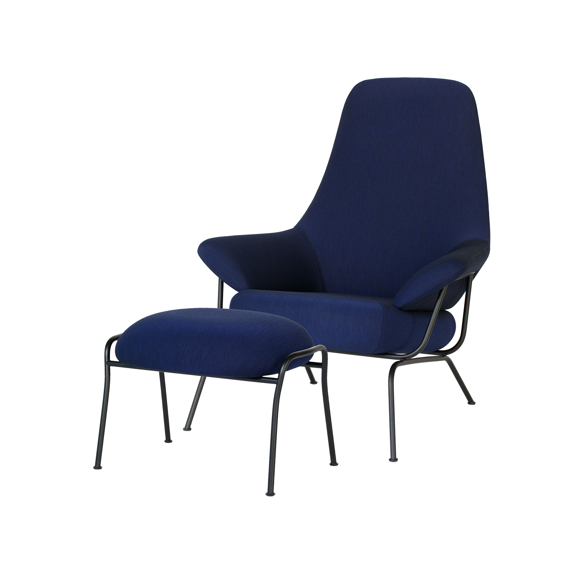 HEM - Hai Lounge Chair + Ottoman - Ink - Fåtöljer - Luca Nichetto - Blå - Metall/Syntetiskt/Skum/Plast/Ull