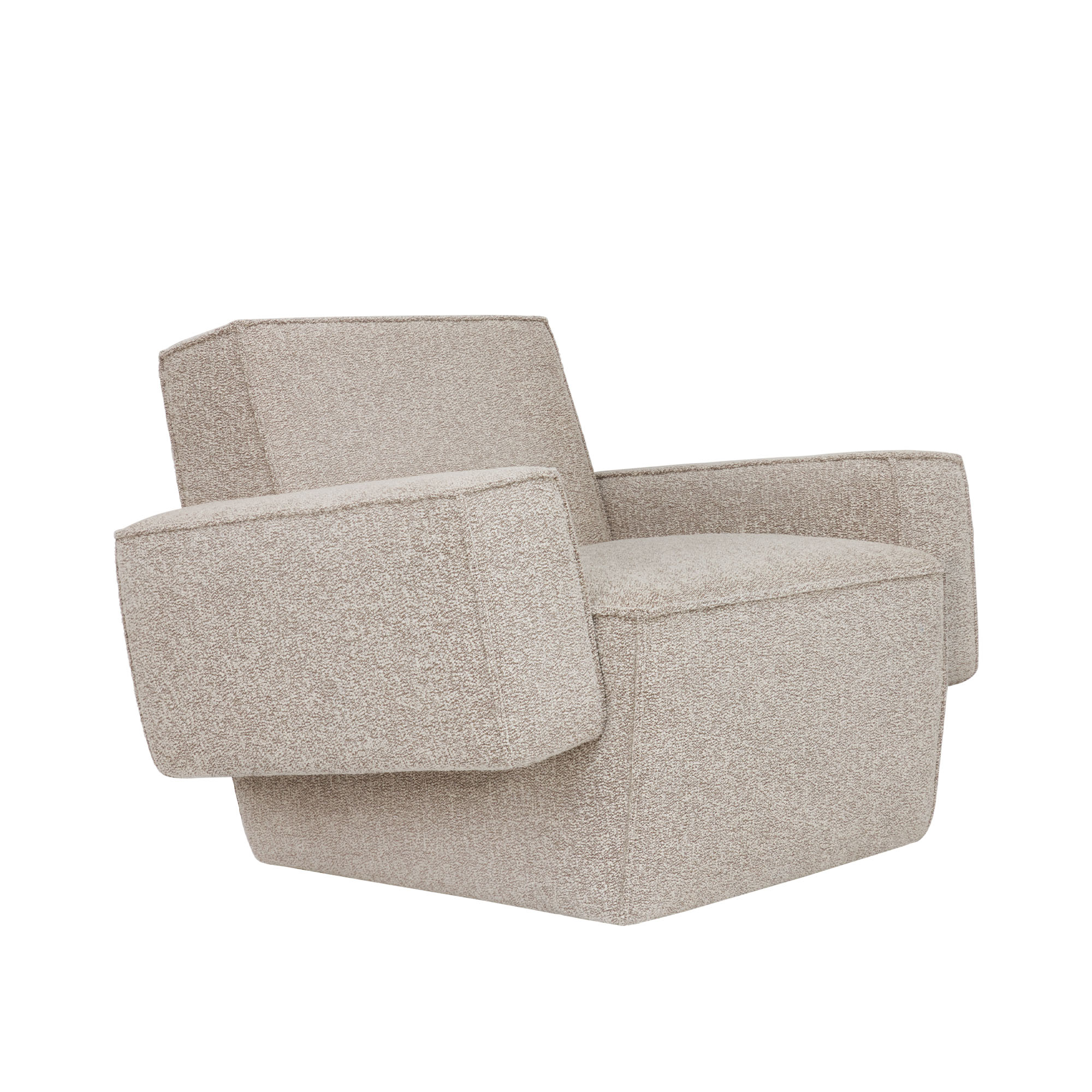 Hunk Lounge Chair With Armrests är formgiven av Kwangho Lee för varumärket Hem. Dess framträdande proportioner och innovativa konstruktion, helt i naturliga material, framhäver Hunk som en bekväm och miljömedveten möbel. Dess geometriska silhuett balanseras av den djupa, inbjudande klädseln, designad för att erbjuda en omfamnande komfort. Tillverkad av naturligt latex för stöd, med en kokosfiberkärna för mjukhet, och klädd i ett bouclétyg, erbjuder Hunk en unik kombination av komfort och estetik.