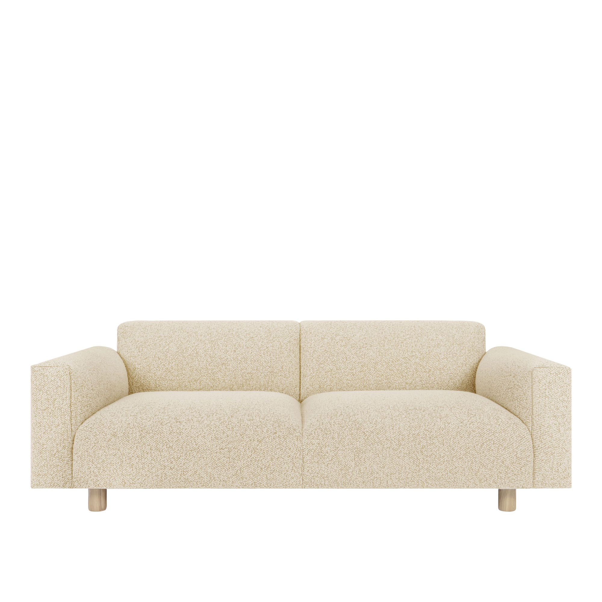 Koti 2-seater Sofa, designad av Form Us With Love, erbjuder en komfortabel sittplats klädd i tjock bouclé eller ull i jordnära toner. Dess solida träben och tidlösa design bidrar till en avkopplande atmosfär i hemmet.