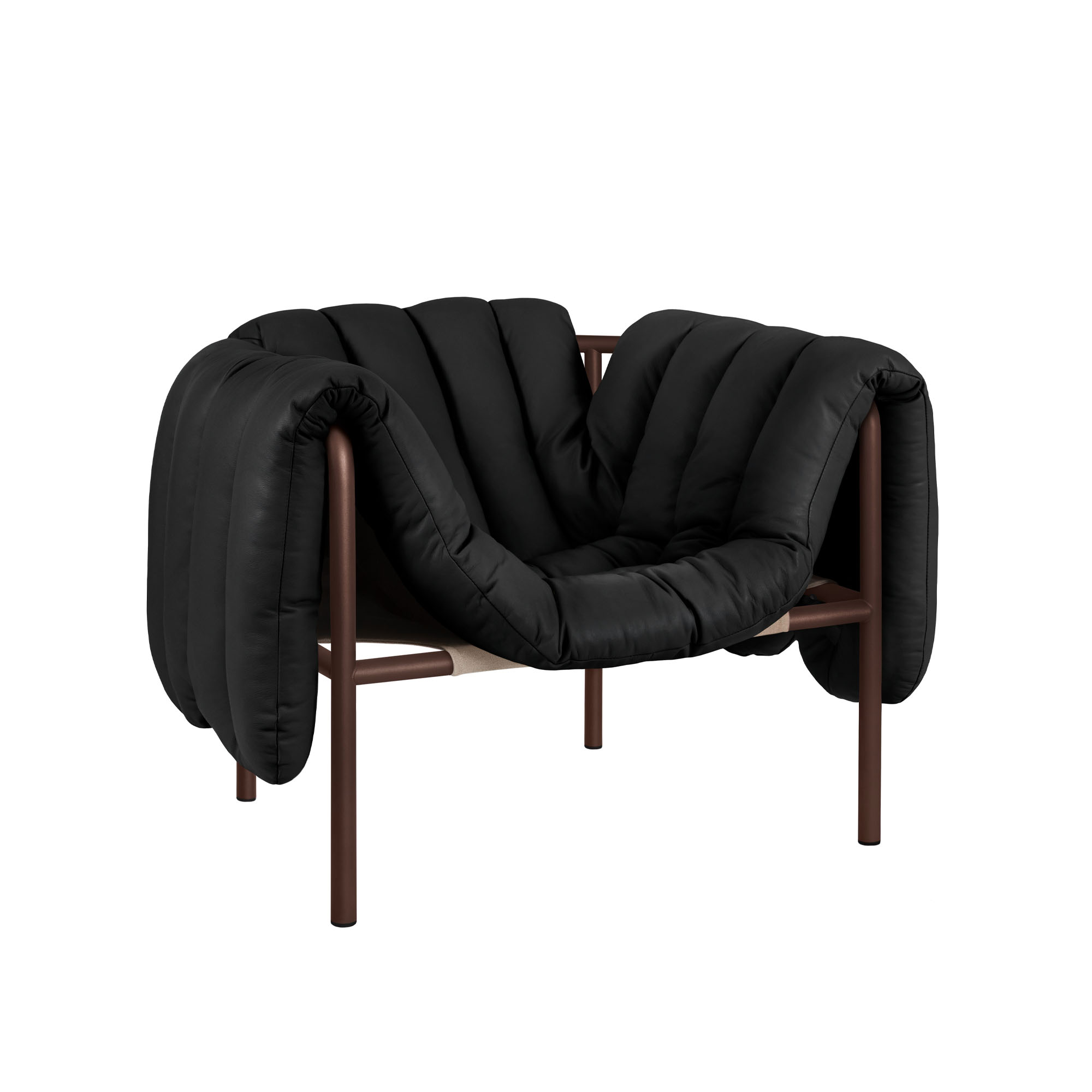 HEM - Puffy Lounge Chair - Black Leather/Chocolate Brown - Fåtöljer - Faye Toogood - Brun,Svart,Blå - Läder/Naturmaterial/Metall/Trä/Skum