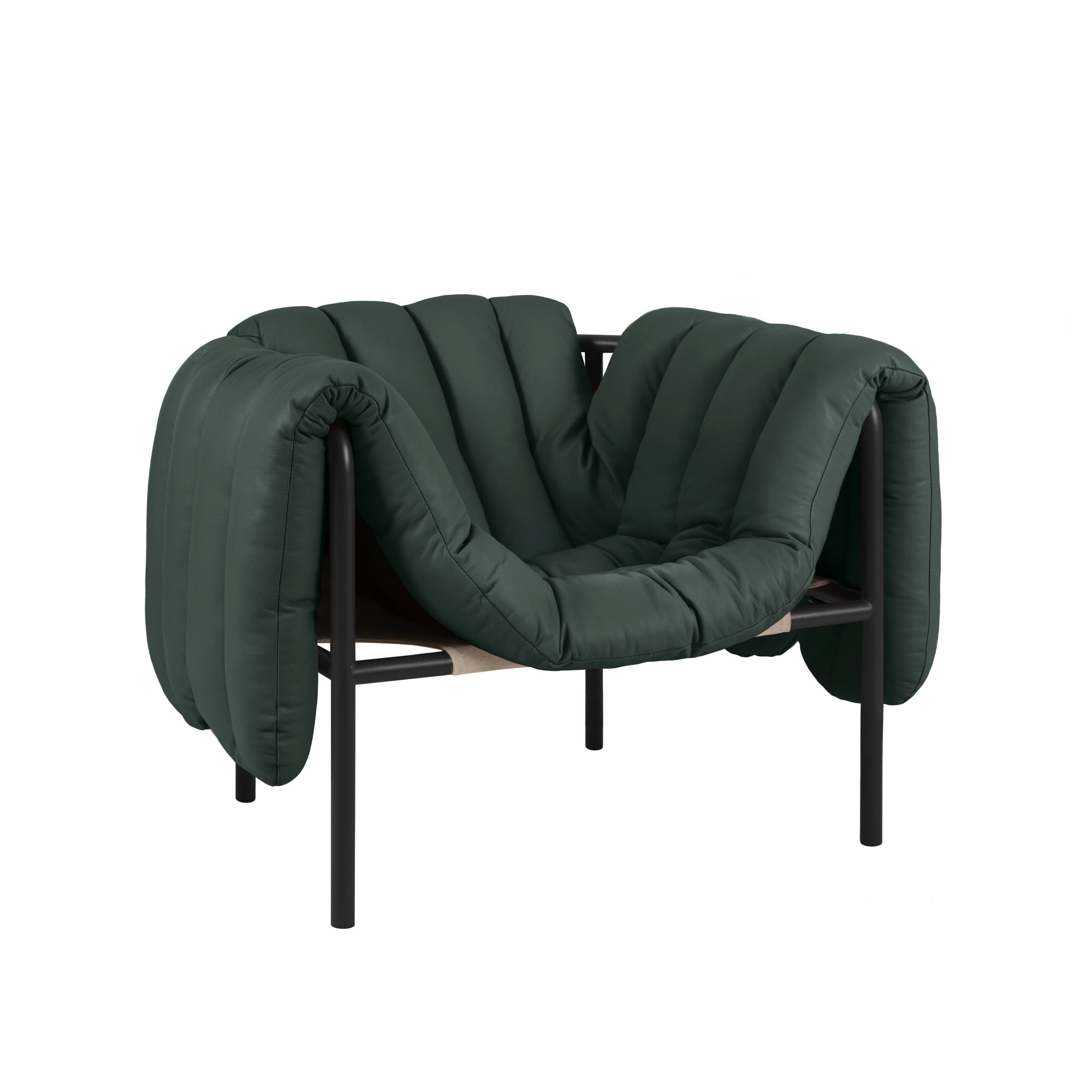 HEM - Puffy Lounge Chair - Dark Green Leather/Black Grey - Fåtöljer - Faye Toogood - Grön,Grå - Läder/Naturmaterial/Metall/Trä/Skum