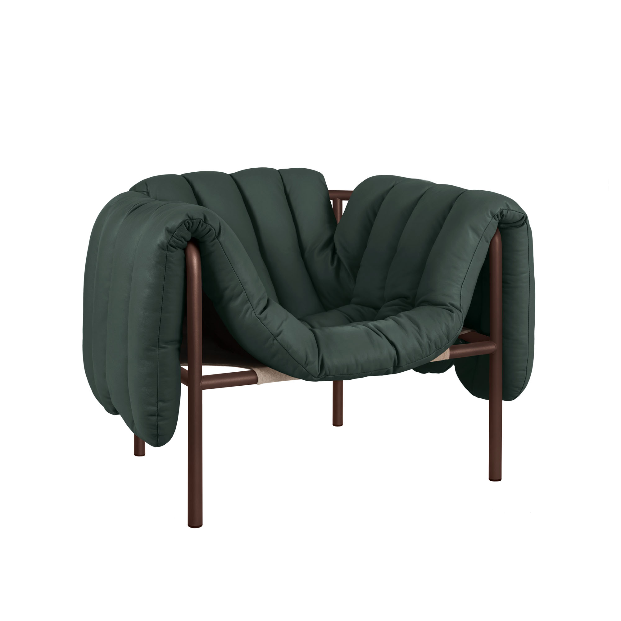 HEM - Puffy Lounge Chair - Dark Green Leather/Chocolate Brown - Fåtöljer - Faye Toogood - Grön,Brun - Läder/Naturmaterial/Metall/Trä/Skum