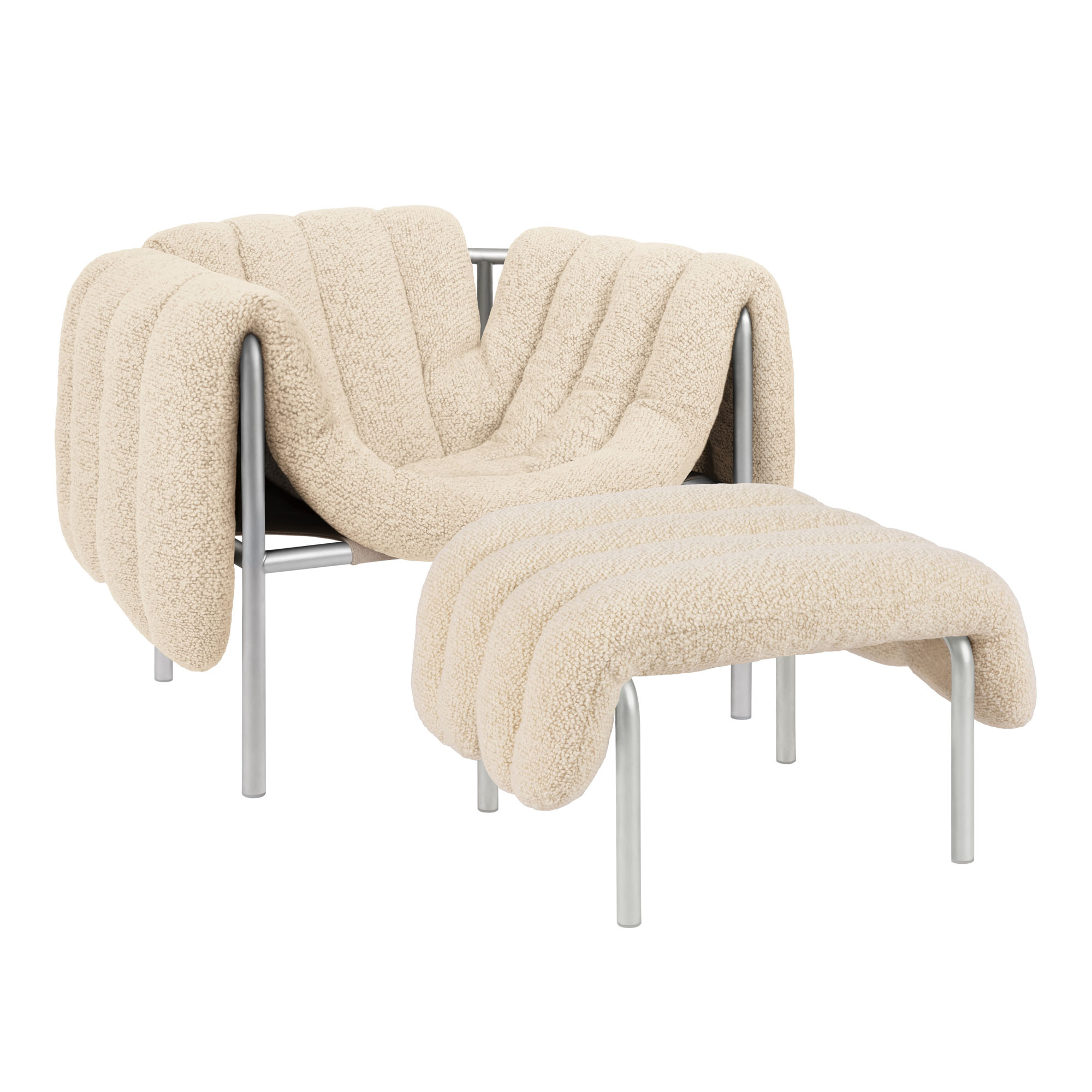 HEM - Puffy Lounge Chair + Ottoman - Eggshell/Stainless - Fåtöljer - Faye Toogood - Silver,Beige - Bomull/Naturmaterial/Metall/Syntetiskt/Skum/Plast