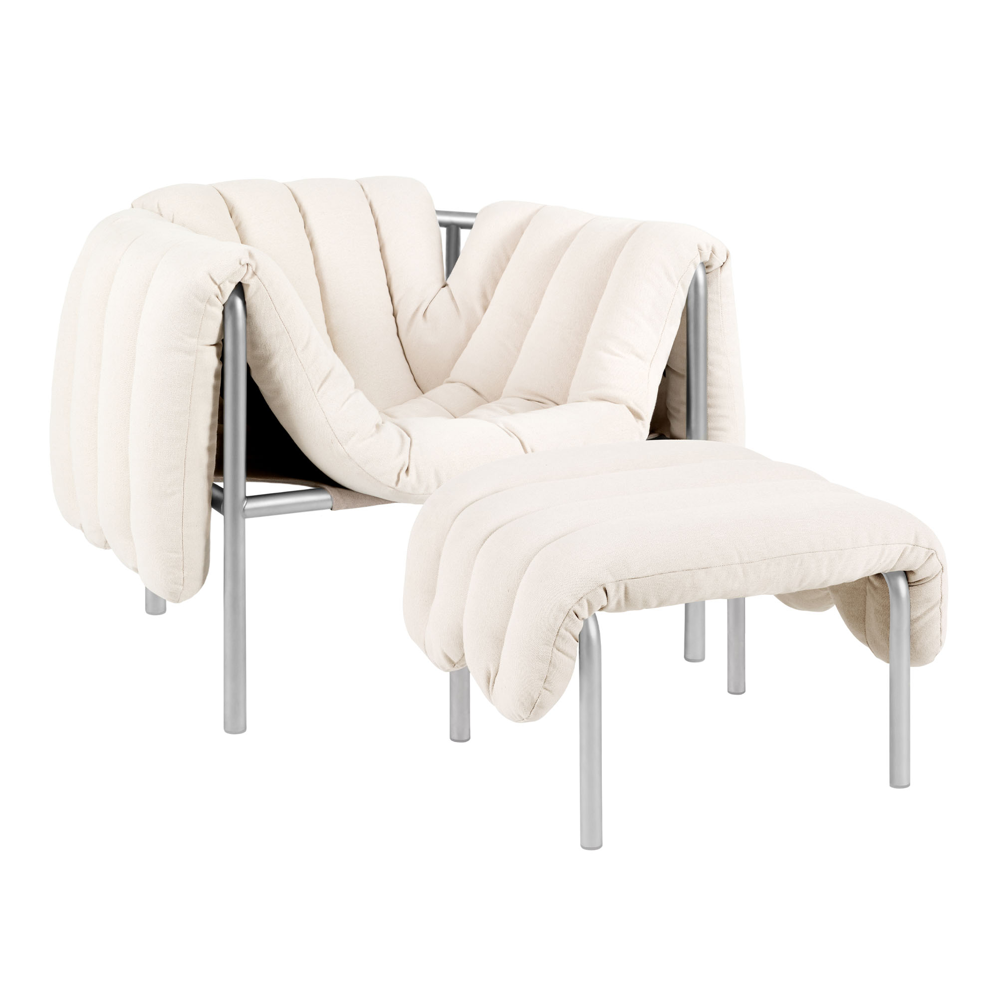 HEM - Puffy Lounge Chair + Ottoman - Natural/Stainless - Fåtöljer - Faye Toogood - Silver,Beige - Bomull/Naturmaterial/Metall/Skum/Plast