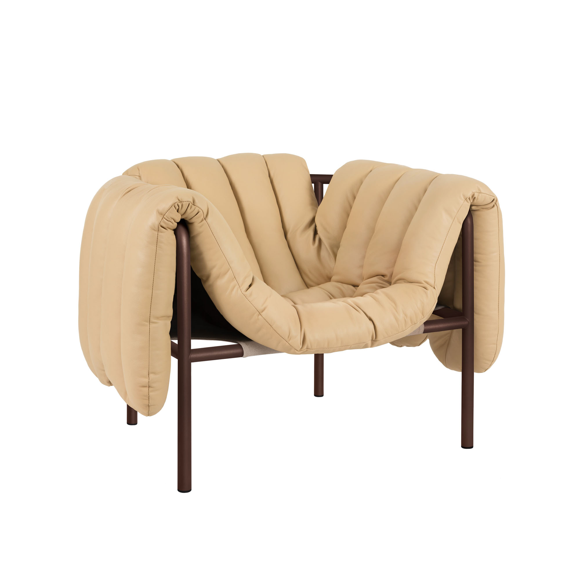 HEM - Puffy Lounge Chair - Sand Leather/Chocolate Brown - Fåtöljer - Faye Toogood - Brun,Beige - Läder/Naturmaterial/Metall/Trä/Skum