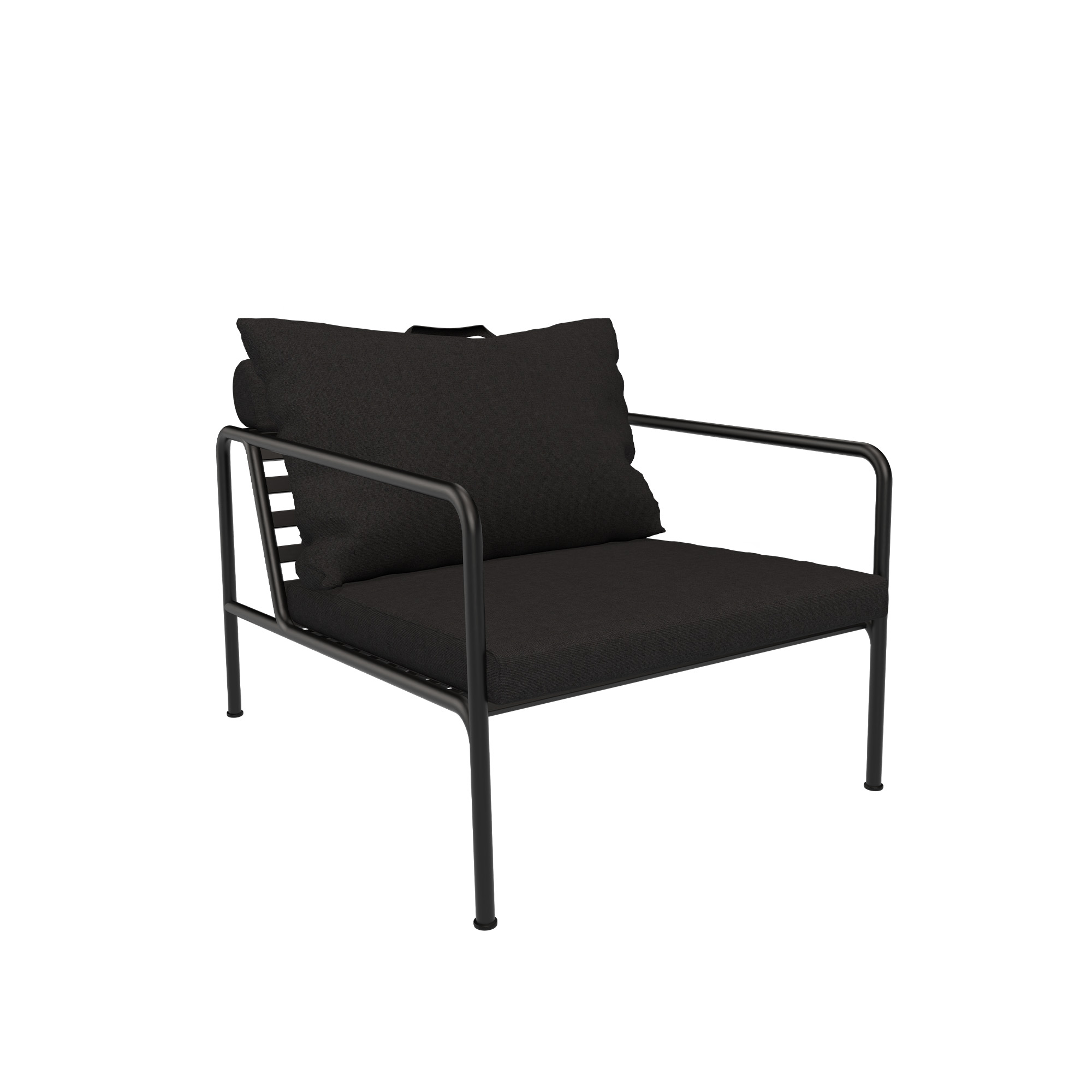 AVON Chair från HOUE är designad av Henrik Pedersen och är framtagen ur en önskan att skapa möbler med ett lätt och elegant utseende samtidigt som hög komfort bibehålls. Denna loungestol utmärker sig genom sin underhållsfria ram i pulverlackerat stål och stora mjuka ryggkuddar som erbjuder enkelhet i strukturen. Kuddarnas handtag understryker produktens funktionalitet, som gör dem lätta att gripa och förvara vid behov.