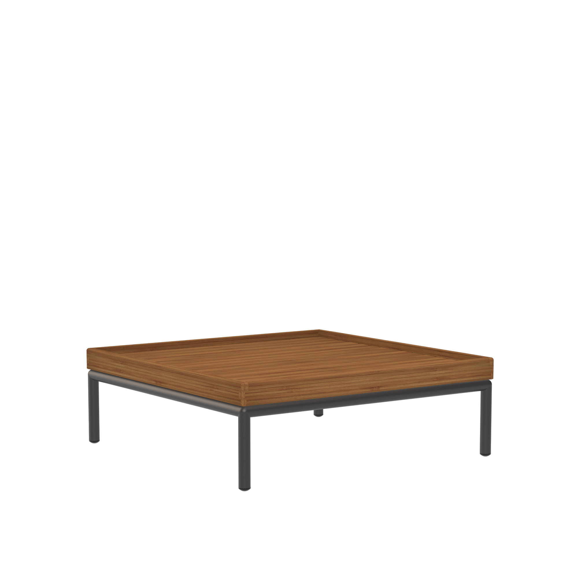 LEVEL Coffee Table är en del av den eleganta och flexibla loungeserien LEVEL från HOUE, skapad av formgivaren Henrik Pedersen. Serien är utformad för att harmoniera väl med utomhusmiljöer och främja en känsla av avslappning och komfort. Soffbordet kombinerar en lätt, pulverlackerad ram i grått aluminium med en bordsskiva i bambu, vilket inte bara ger hållbarhet och väderbeständighet utan även en varm och välkomnande estetik.