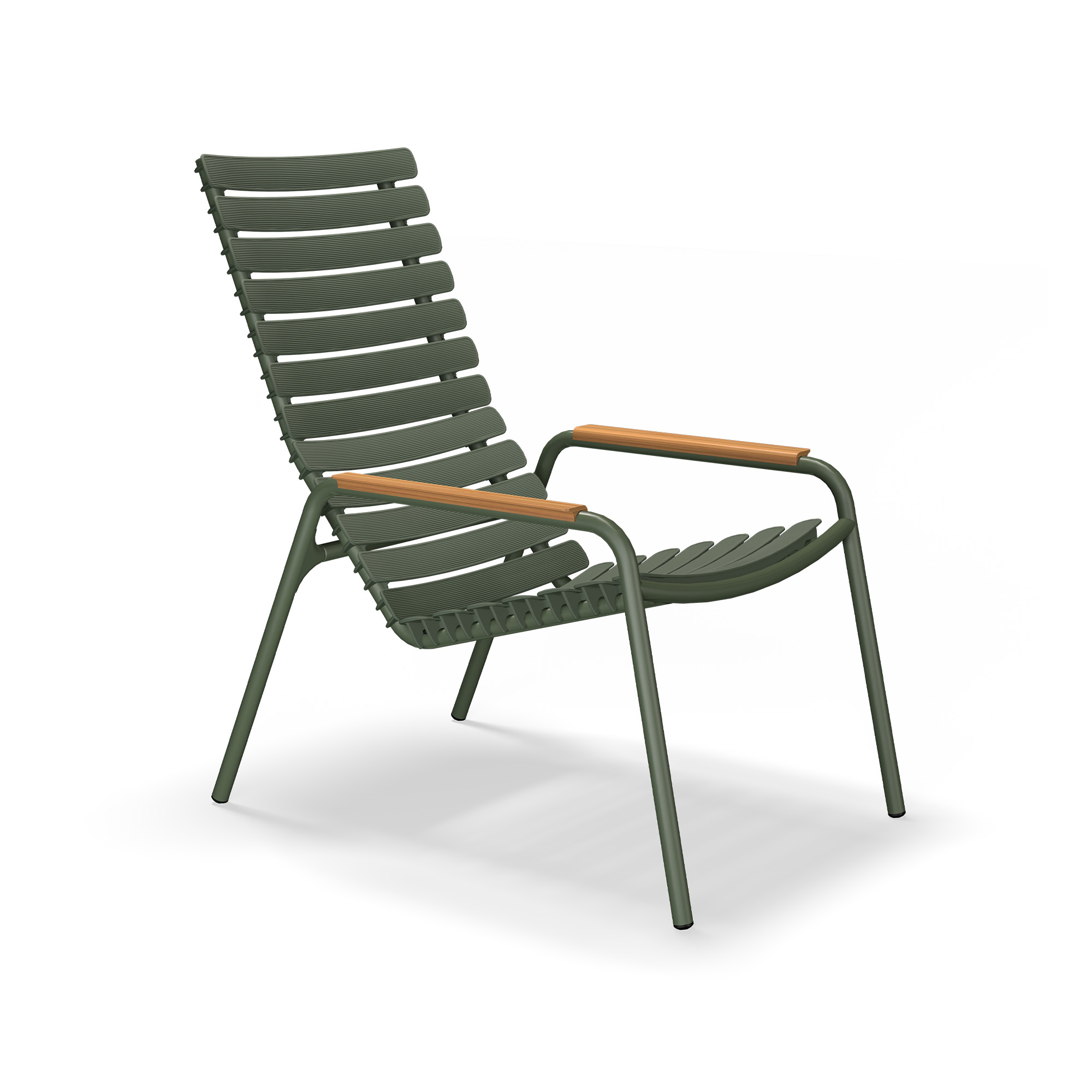 Houe - ReCLIPS Lounge Chair Bamboo Armrest - Olive Green - Solstolar - Henrik Pedersen - Metall/Trä/Plast
