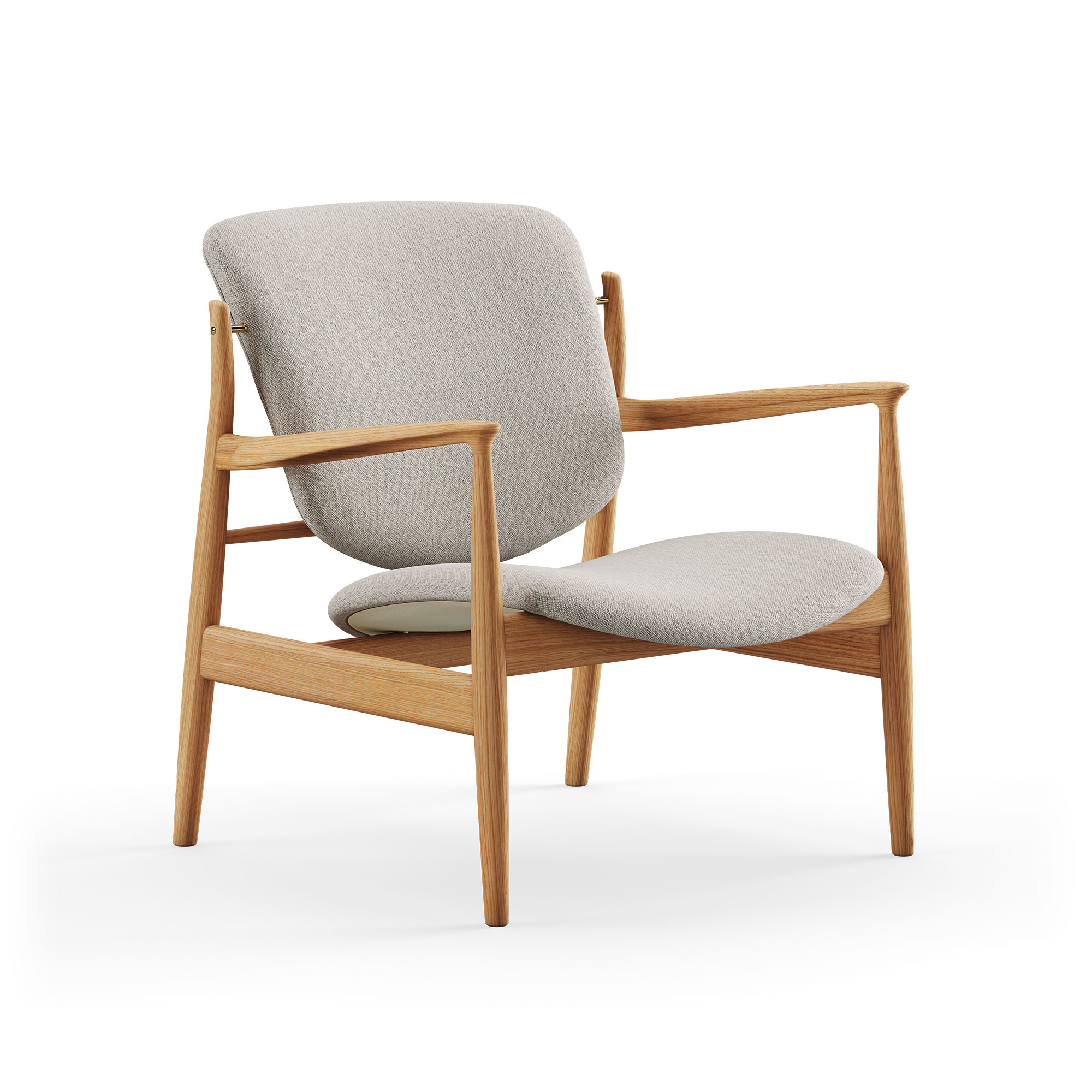 France Chair, även känd under beteckningen FJ 136, är en skapelse från 1956 av designern Finn Juhl. Denna stol är ett tydligt exempel på Juhls distinkta designstil, med en sittdel och ryggstöd som elegant verkar sväva fritt över stolens stomme, samt de anatomiskt anpassade armstöden som också kännetecknar den berömda 45 Chair. Sedan 2016 produceras stolen av House of Finn Juhl och finns tillgänglig i träslagen ek och valnöt. Kunderna kan välja mellan olika typer av handgjorda klädslar i antingen textil eller läder för alla modeller. Ursprungligen skapades France Chair i ett samarbete med möbelföretaget France & Son, specifikt för den amerikanska konsumentmarknaden. Stolen levererades i början som ett platt paket som kunden fick sätta ihop själv, vilket var en central del av France & Sons försäljningskoncept. Detta bidrog till att Finn Juhl och France & Son nådde stora framgångar i USA. Numera skickas stolen dock ut fullständigt ihopsatt. På vår webbplats presenterar vi ett urval av tillgängliga varianter, medan fullständig information om alla modeller finns i vårt produktblad. Om du är intresserad av andra varianter eller behöver assistans med din beställning, tveka inte att kontakta oss.