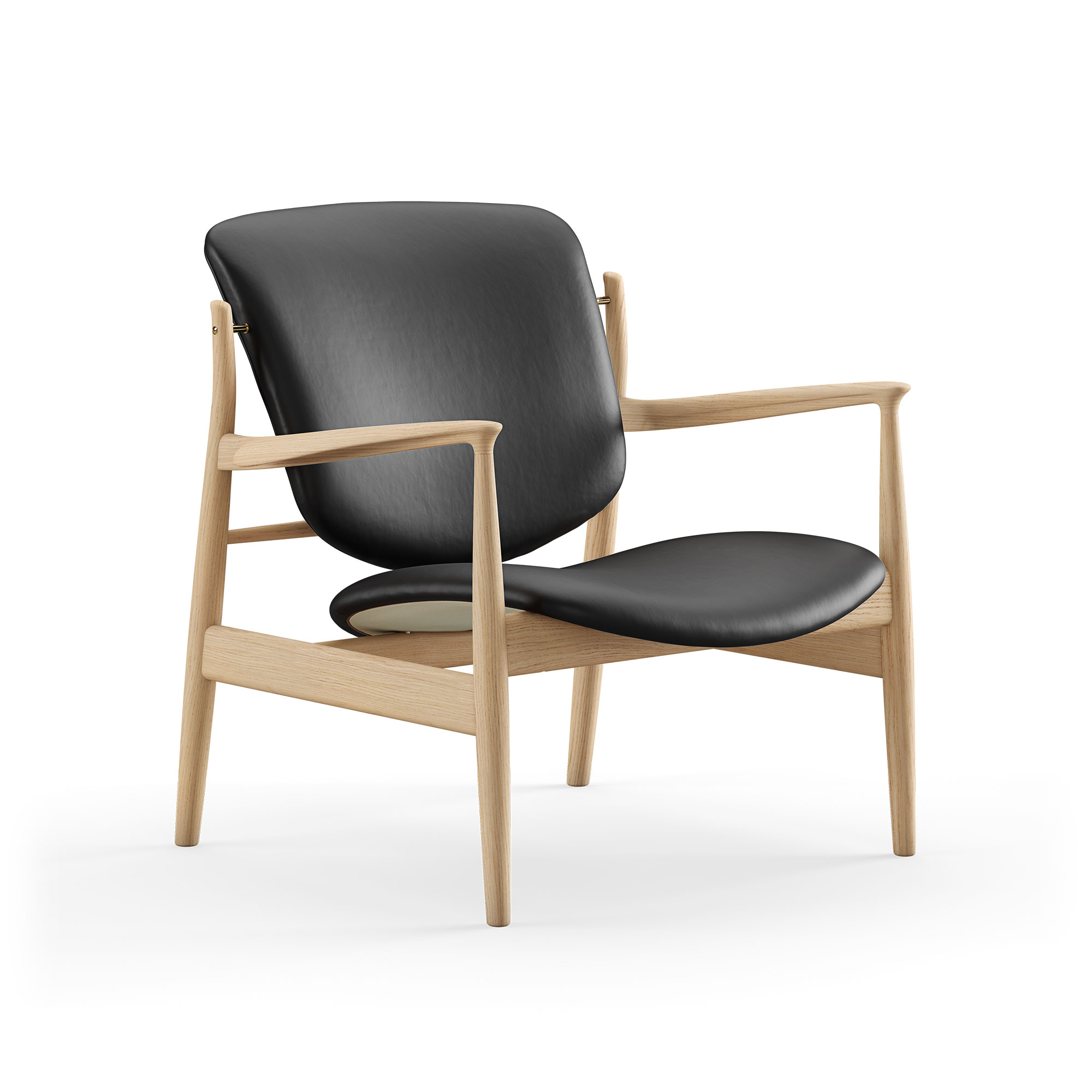 House of Finn Juhl - France Chair, Oak, Leather Group 2, Nevada NV0500S Black - Fåtöljer - Finn Juhl - Träfärgad,Svart - Läder/Trä