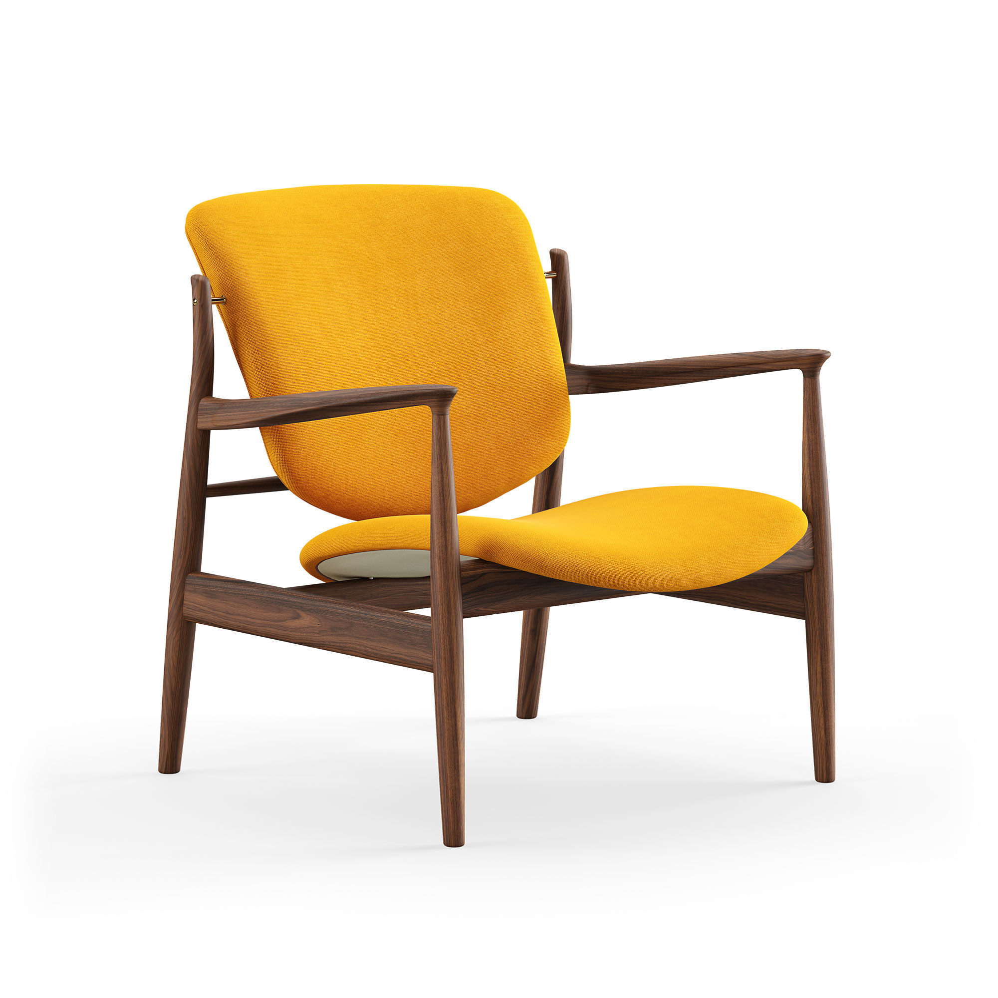 House of Finn Juhl - France Chair, Walnut, Cat. 2 Hallingdal 65 - 457 - Fåtöljer - Finn Juhl - Träfärgad,Gul - Trä/Textilmaterial