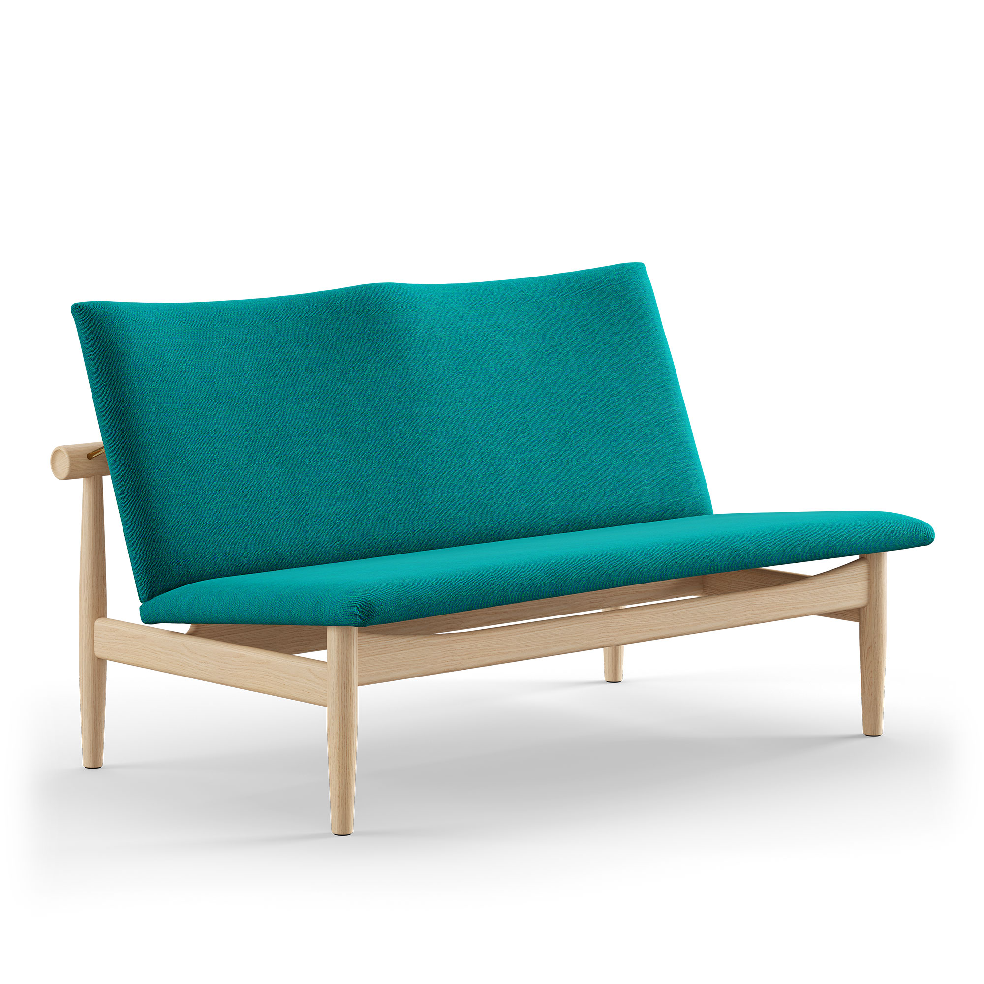 House of Finn Juhl - Japan Sofa 2-seater, Clear oiled oak, Cat. 3 Watercolour, Peacock - Soffor - Finn Juhl - Grön,Träfärgad,Blå