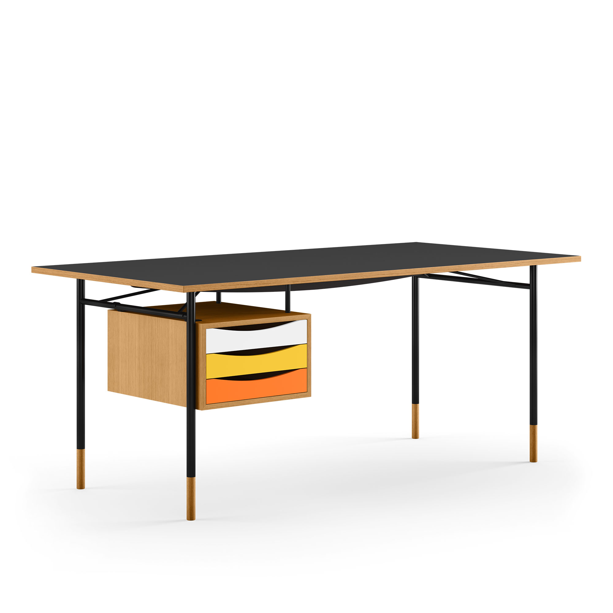 House of Finn Juhl - Nyhavn Desk, 190 cm, with Tray Unit, Oak Dark Oil/Black linoleum, Black Steel, Warm - Skrivbord - Finn Juhl - Träfärgad,Svart - Metall/Trä