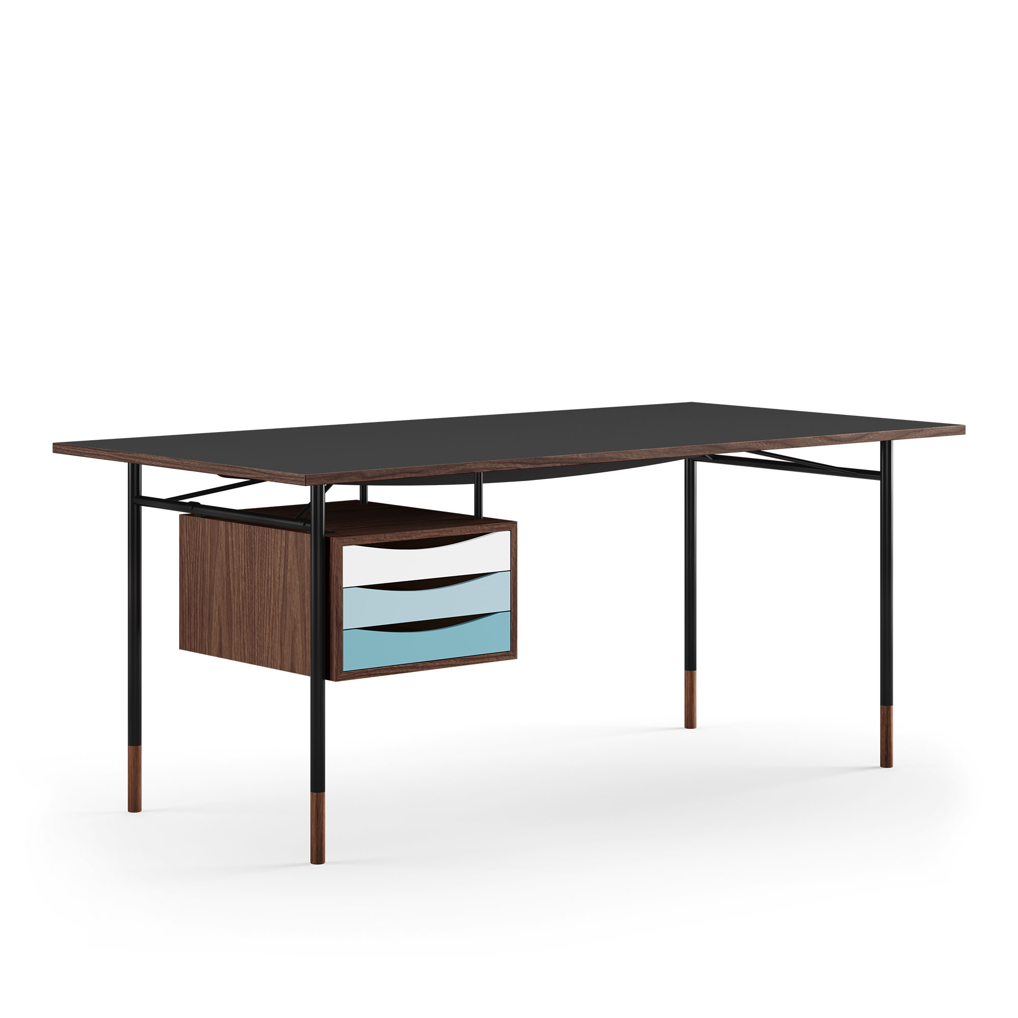 House of Finn Juhl - Nyhavn Desk, 190 cm, with Tray Unit, Walnut, Black Steel, Cold - Skrivbord - Finn Juhl - Träfärgad,Svart - Metall/Trä