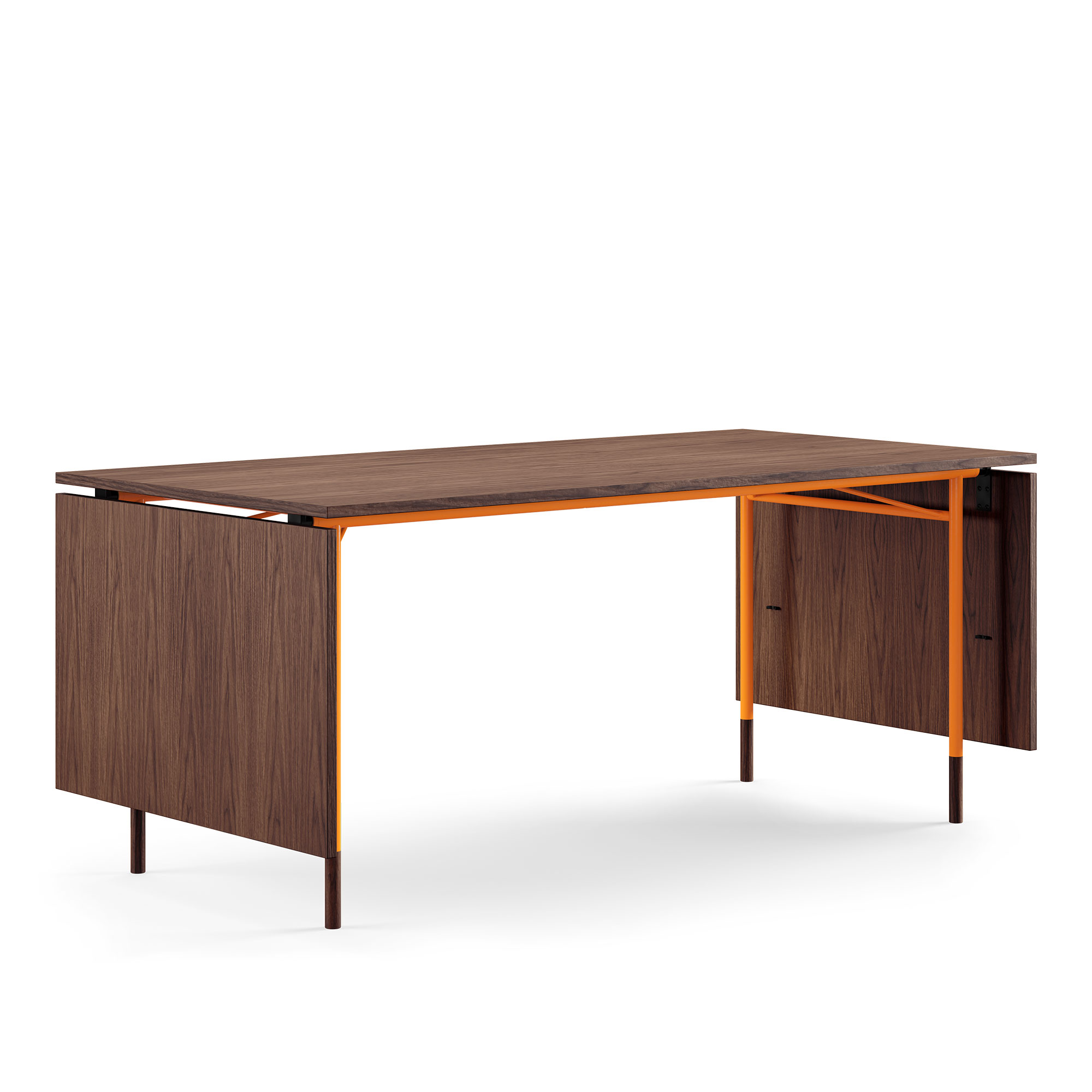 House of Finn Juhl - Nyhavn Dining bord, With Extensions, Top: Walnut, Base: Orange Steel - Matbord - Finn Juhl - Orange,Träfärgad - Metall/Trä