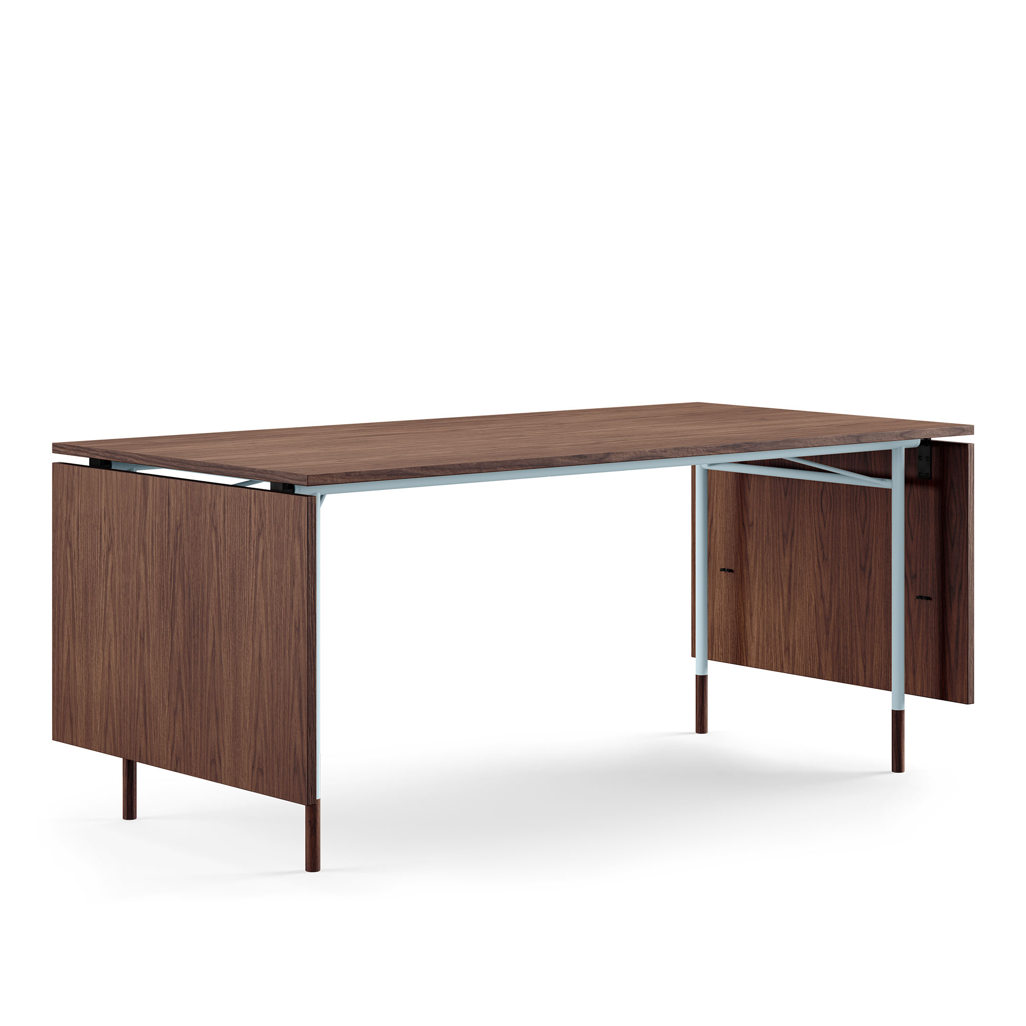 House of Finn Juhl - Nyhavn Dining Table, With Extensions, Top: Walnut, Base: Light Blue Steel - Matbord - Finn Juhl - Träfärgad - Metall/Trä