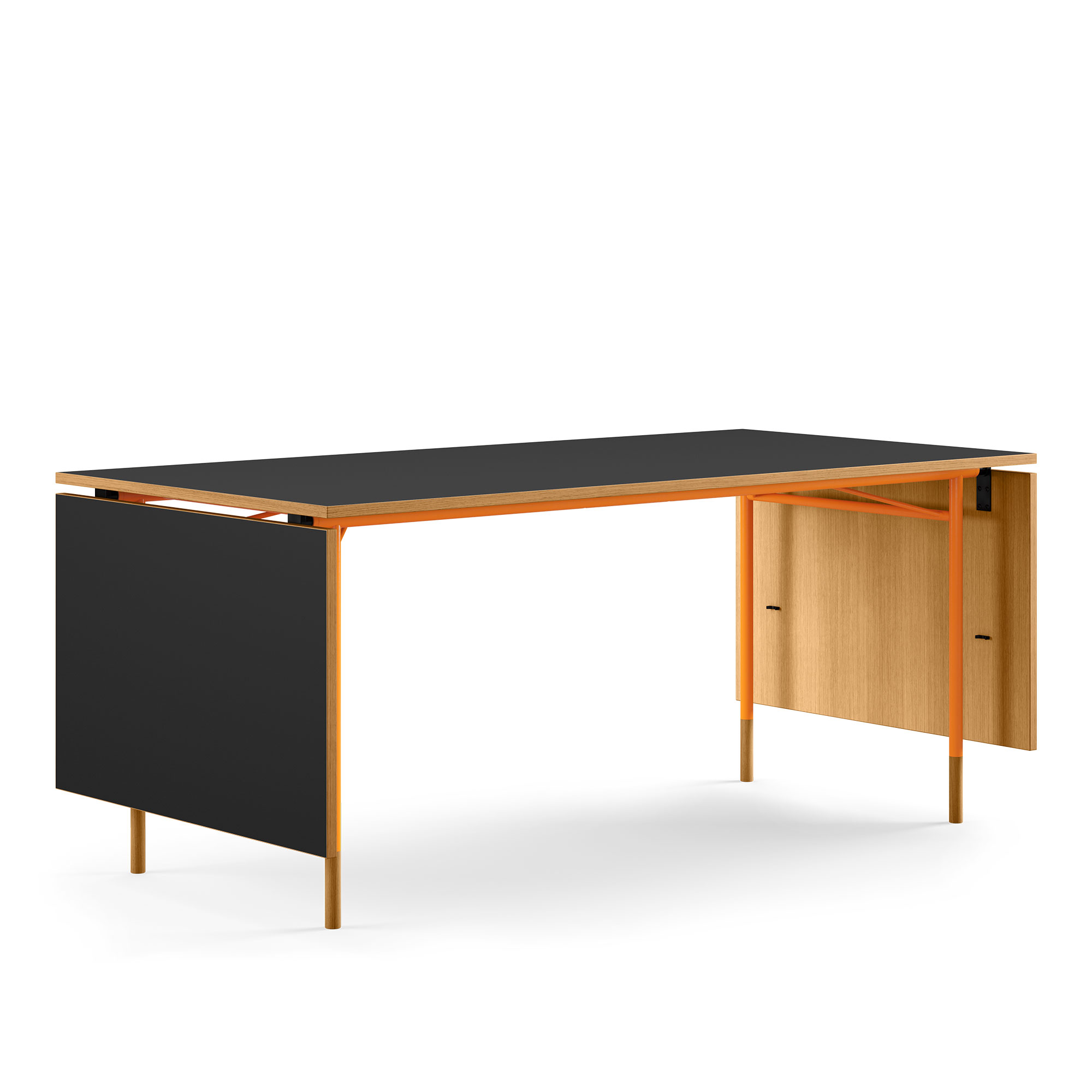 House of Finn Juhl - Nyhavn matbord med klaffar Dark oiled oak/black linoleum Orange Steel - Matbord - Finn Juhl - Orange,Träfärgad,Svart - Metall/Trä