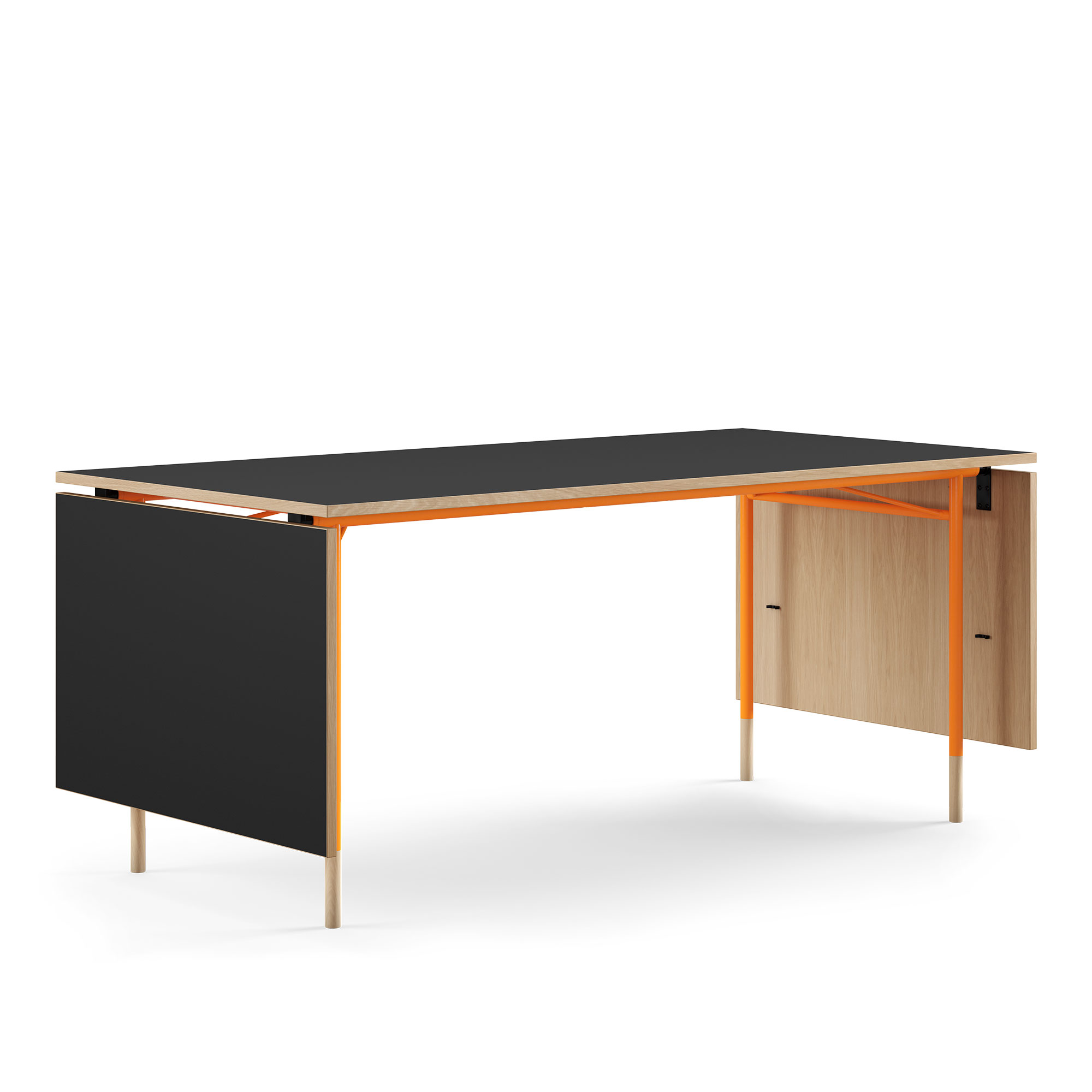 House of Finn Juhl - Nyhavn matbord, With Extensions, Clear oiled oak/black linoleum , Orange Steel - Matbord - Finn Juhl - Orange,Träfärgad,Svart - Metall/Trä