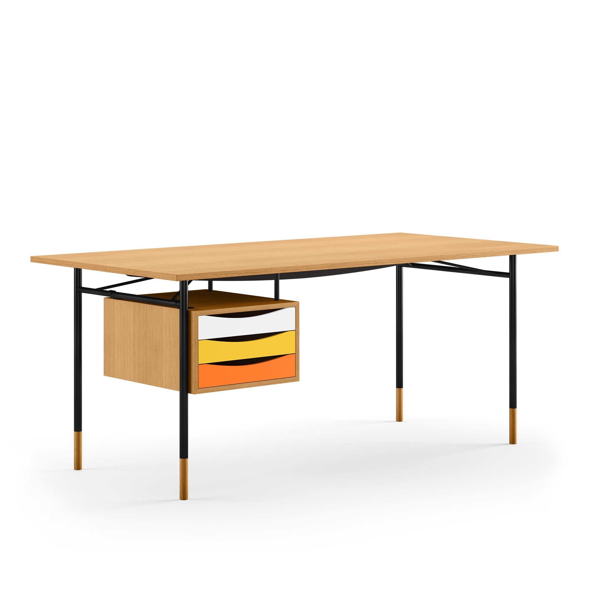 House of Finn Juhl - Nyhavn skrivbord 170 cm Warm med lådor Oak Dark Oil Black Steel Warm - Skrivbord - Finn Juhl - Träfärgad,Svart - Metall/Trä