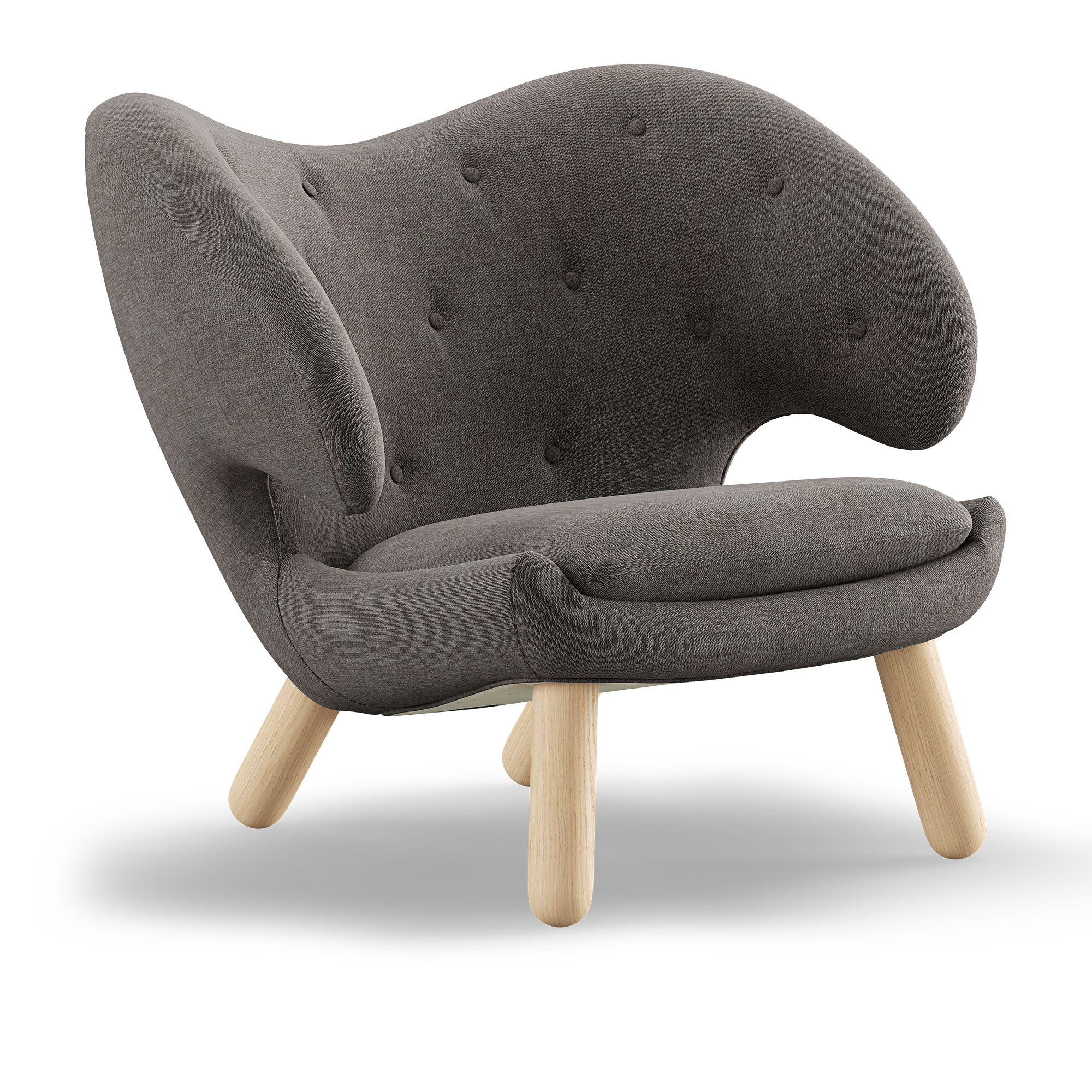 House of Finn Juhl - Pelican Chair With Buttons, Clear oiled oak, Cat. 1 Remix 163 - Fåtöljer - Finn Juhl - Träfärgad,Grå - Trä/Textilmaterial