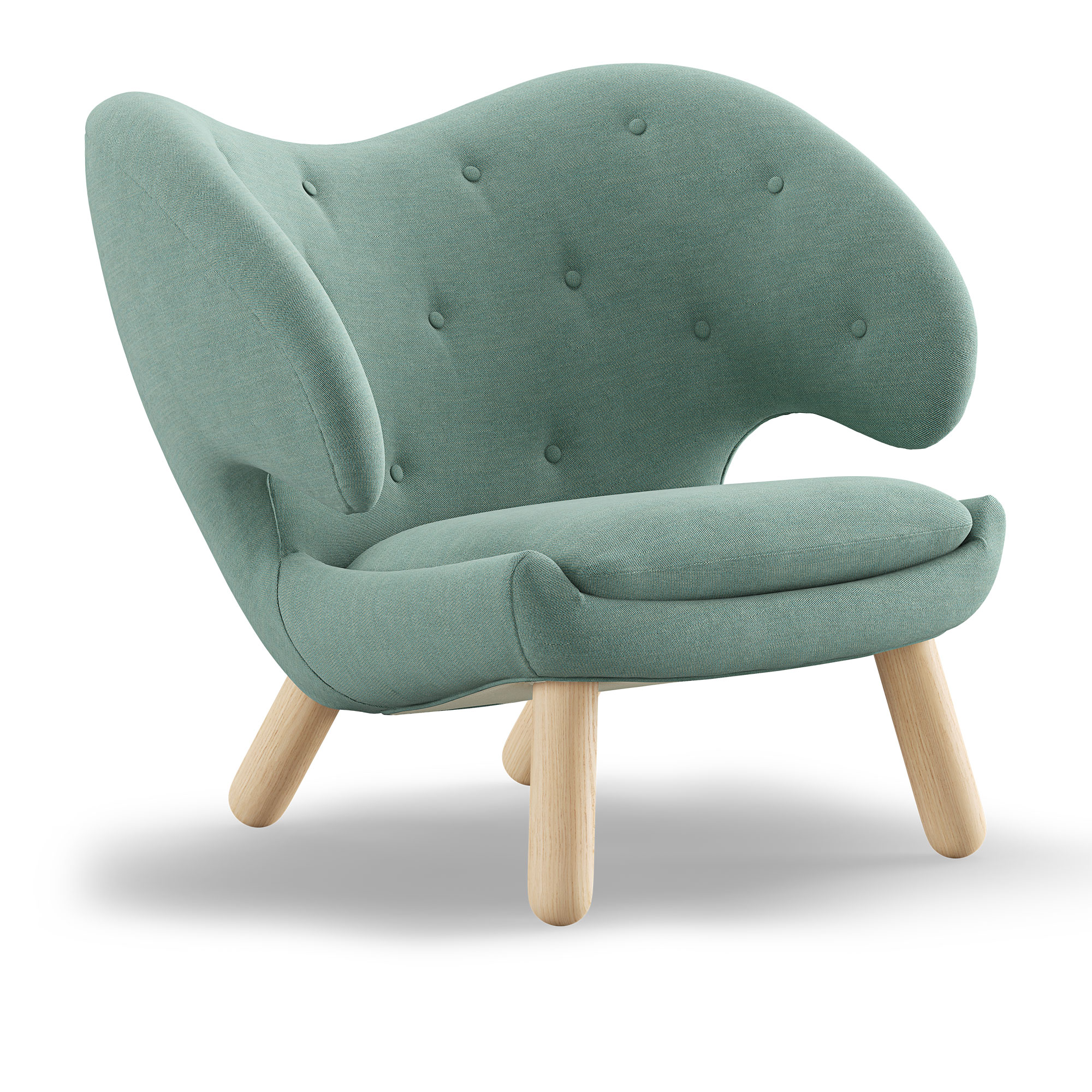 House of Finn Juhl - Pelican Chair With Buttons, Clear oiled oak, Cat. 3 Watercolour, Himalaya - Fåtöljer - Finn Juhl - Grön,Träfärgad,Blå - Trä/Textilmaterial