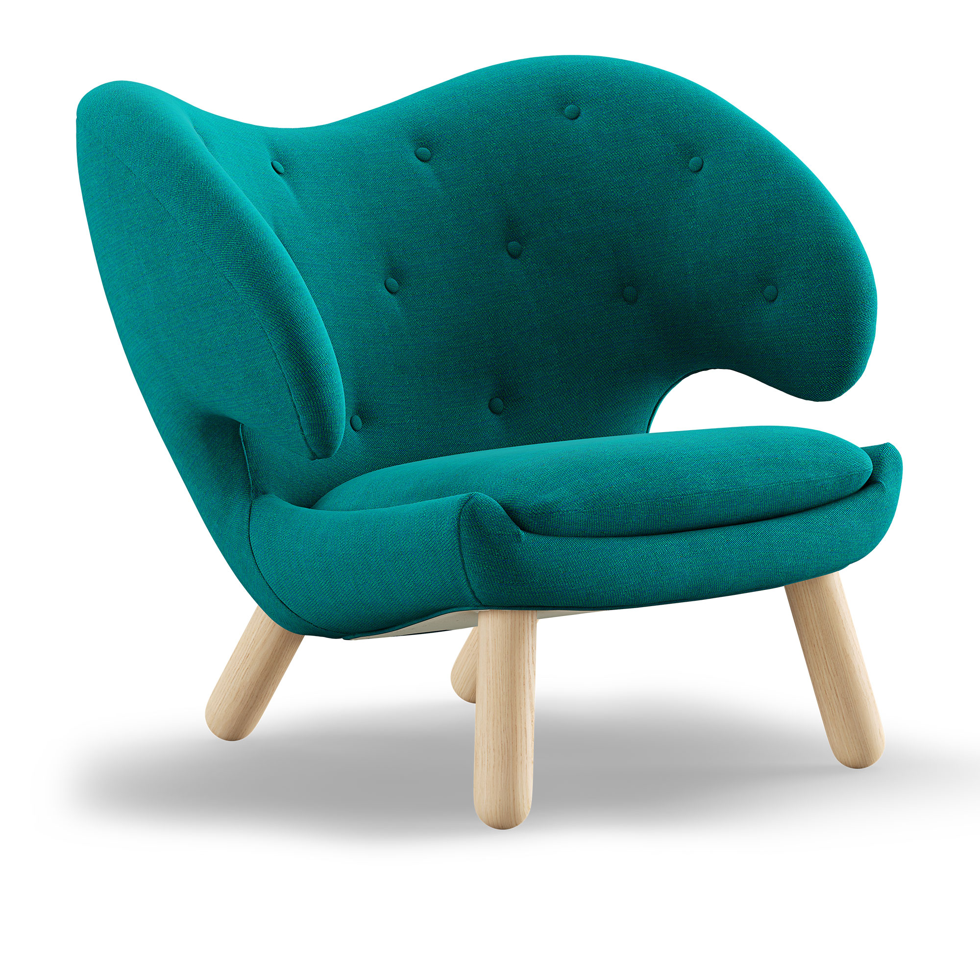House of Finn Juhl - Pelican Chair With Buttons, Clear oiled oak, Cat. 3 Watercolour, Peacock - Fåtöljer - Finn Juhl - Grön,Träfärgad,Blå - Trä/Textilmaterial