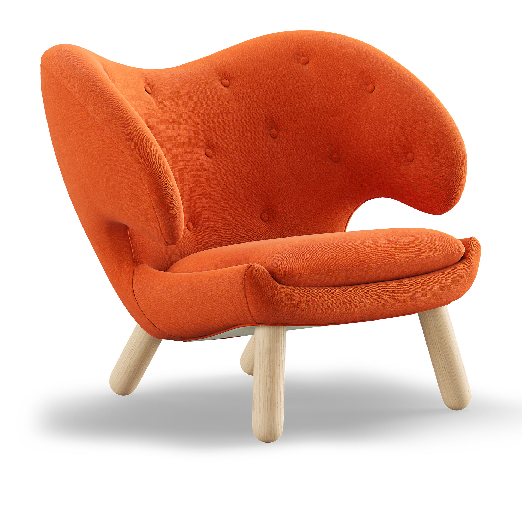 House of Finn Juhl - Pelican Chair With Buttons, Clear oiled oak, Cat. 3 Watercolour, Pumpkin Spice - Fåtöljer - Finn Juhl - Orange,Träfärgad - Trä/Textilmaterial