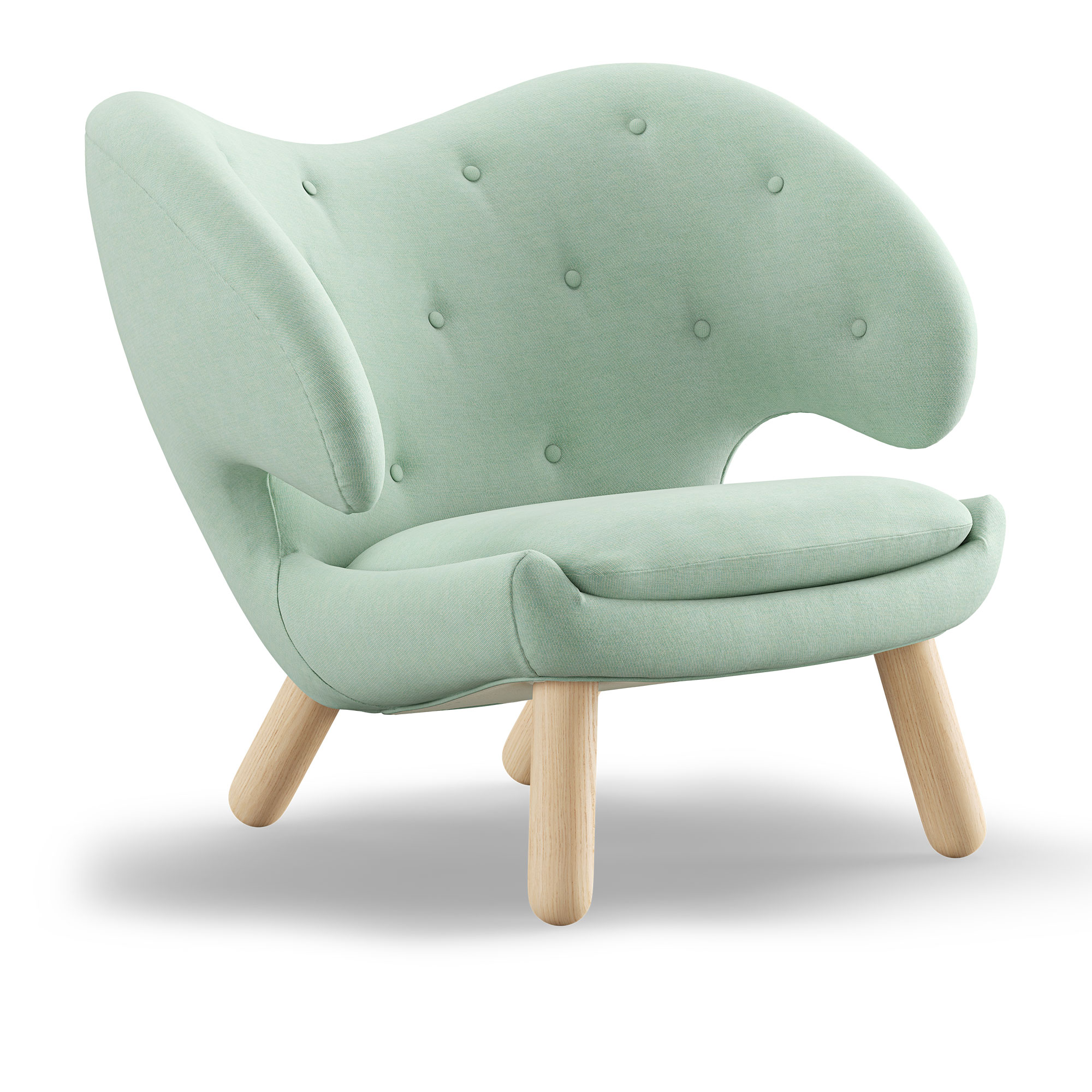House of Finn Juhl - Pelican Chair With Buttons, Clear oiled oak, Cat. 3 Watercolour, Silver Azure - Fåtöljer - Finn Juhl - Grön,Träfärgad - Trä/Textilmaterial