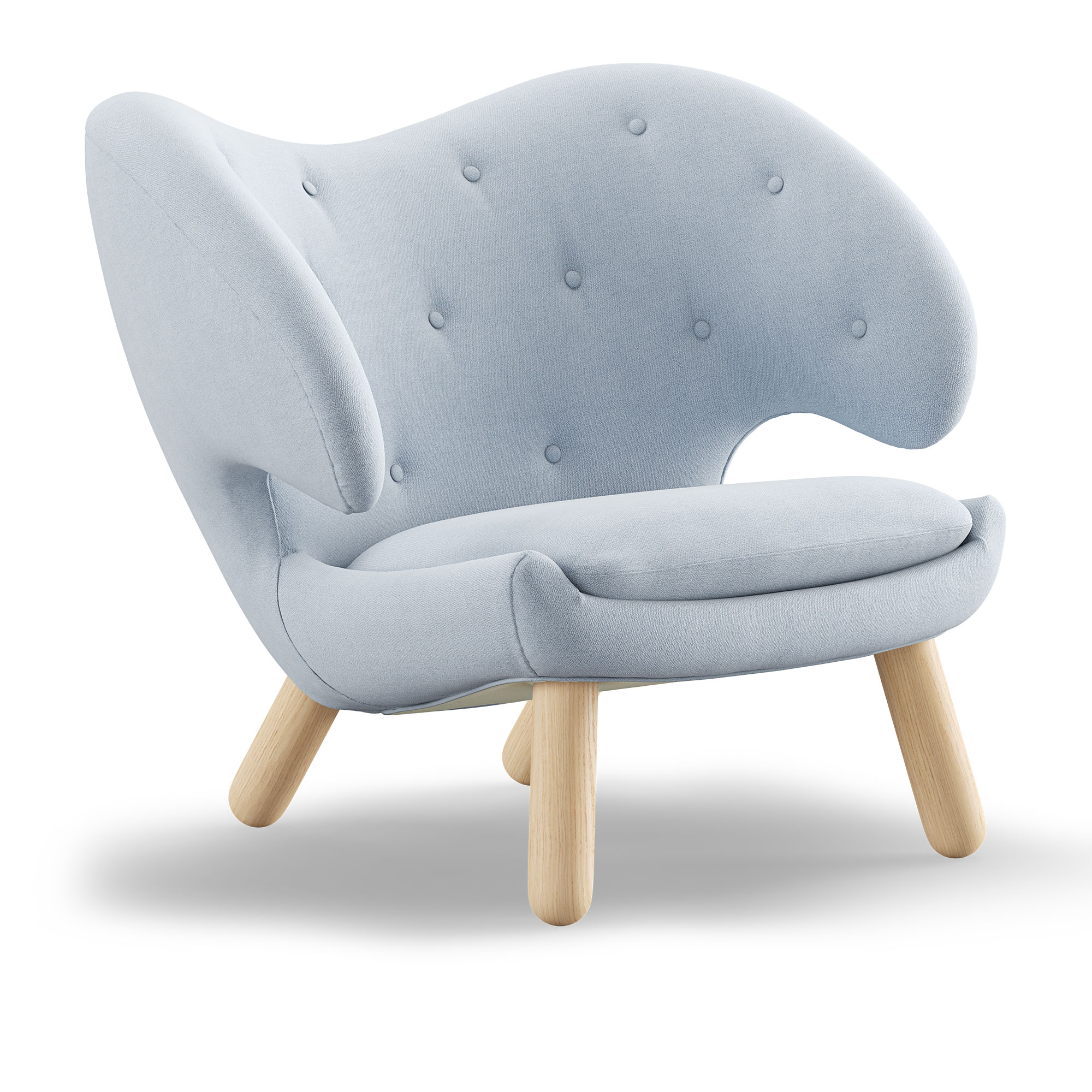 House of Finn Juhl - Pelican Chair With Buttons, Clear oiled oak, Cat. 4 Vidar 723 - Fåtöljer - Finn Juhl - Träfärgad,Blå - Trä/Textilmaterial